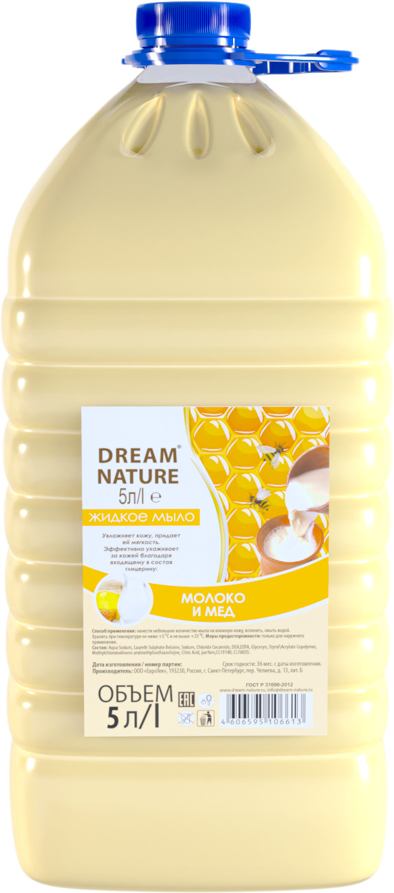 Жидкое мыло Dream Nature "МОЛОКО И МЕД" кремообразное, 5 л