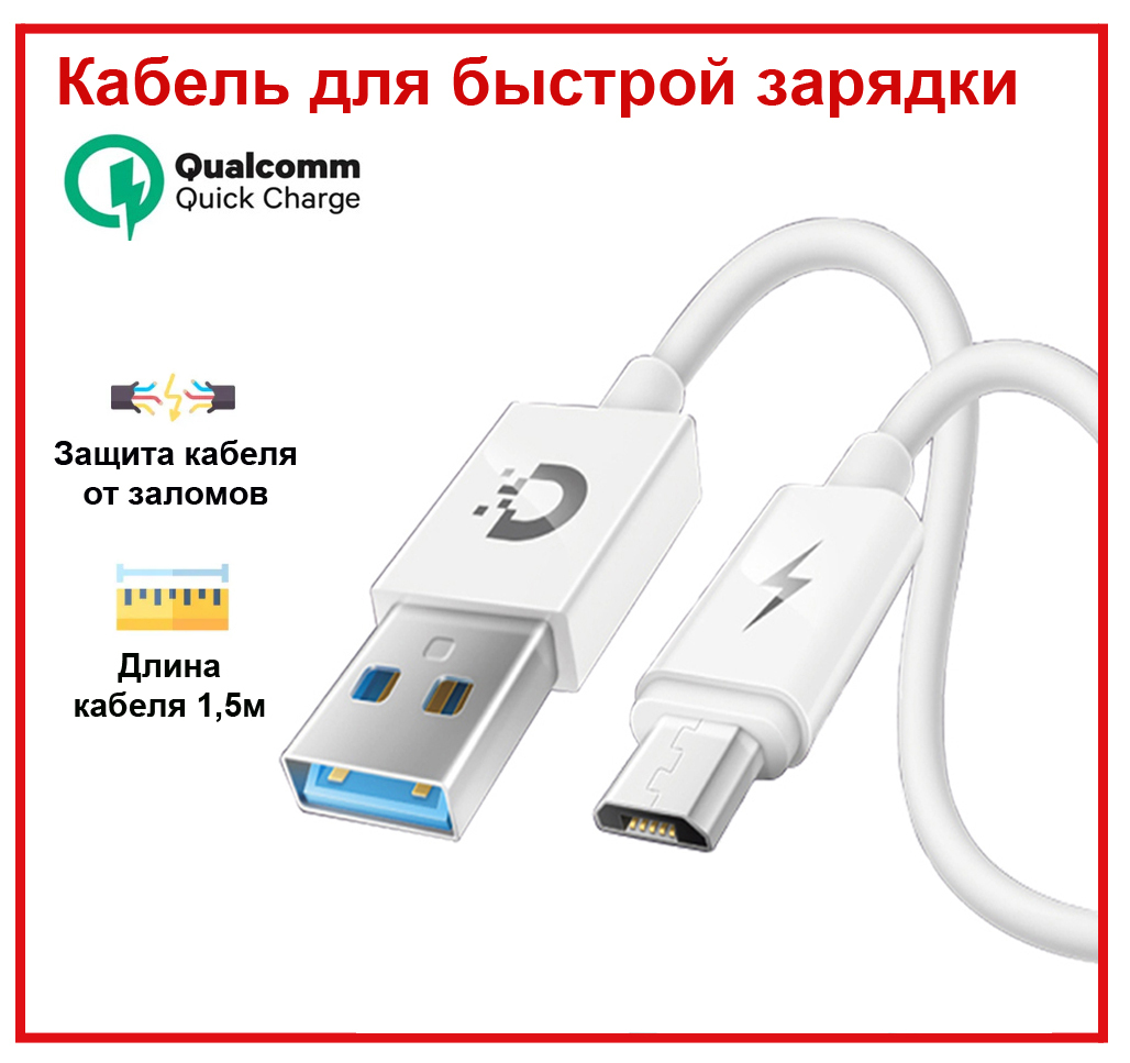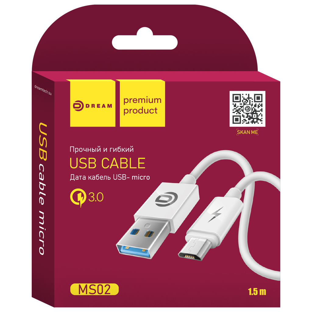 Сверхпрочный кабель microUSB-USB DREAM MS02, (1,5 м), 2.4A (поддержка скоростной зарядки QC 3.0)