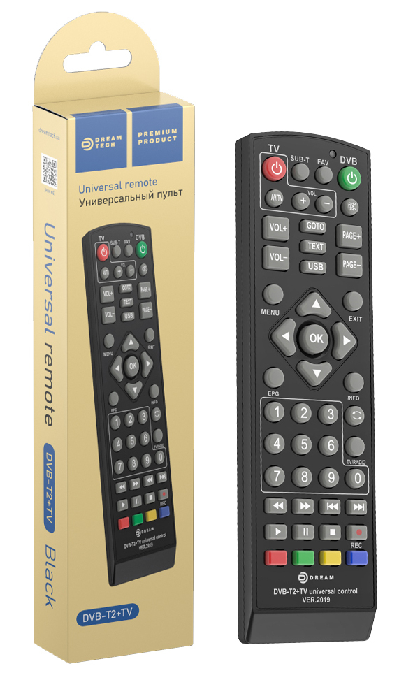 Пульт универсальный DREAM tech DVB-T2+TV (для TV приставок) черный