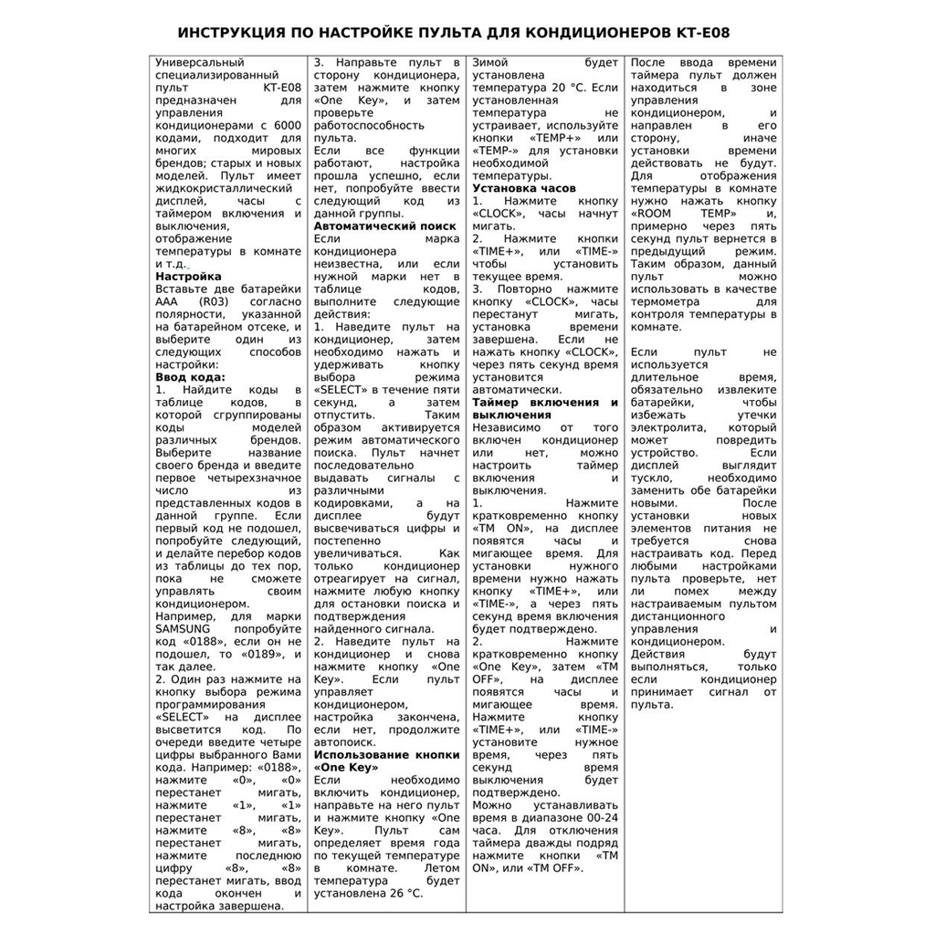Универсальный пульт для кондиционеров, Dream Tech KT-E08