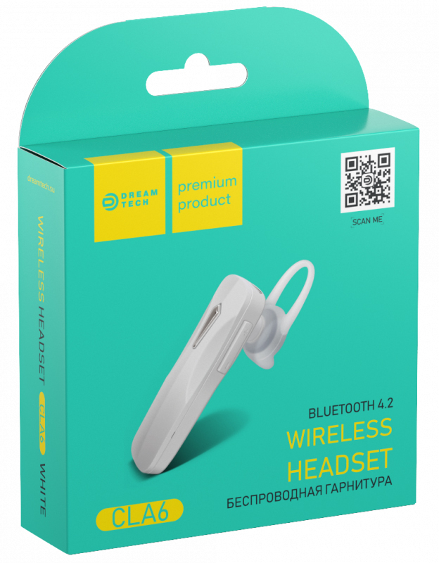 Гарнитура BLUETOOTH, Dream tech CLA6 (55 mAh, MicroUSB), белый