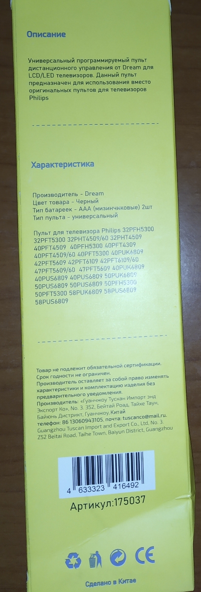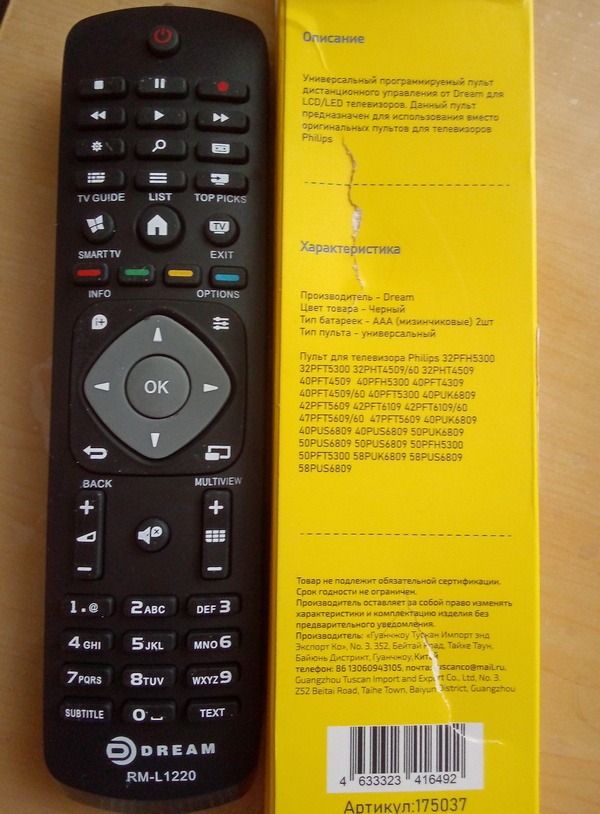 Универсальный пульт Dream Tech RM-L1220 для телевизоров PHILIPS