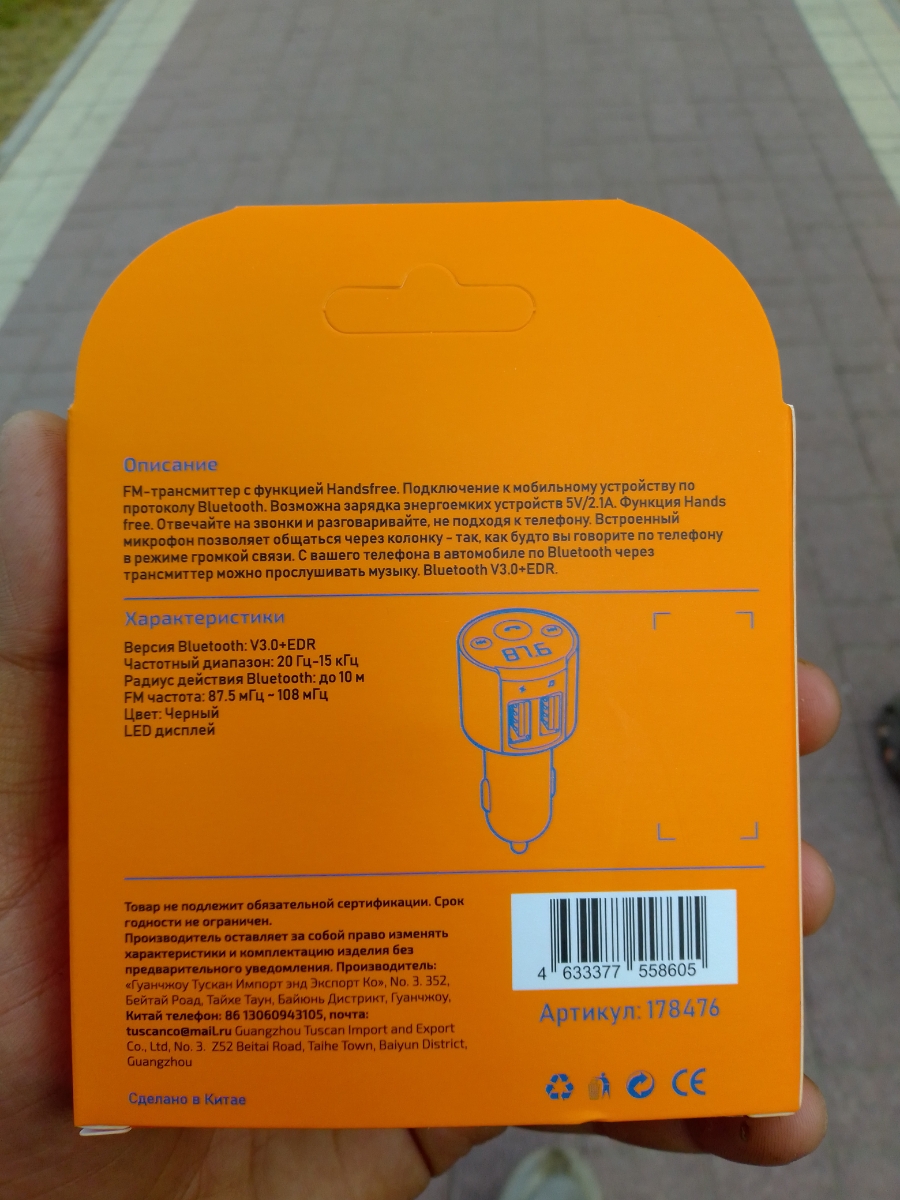 FM-трансмиттер BLUETOOTH X25 2USB 3.1A (LED, TF Card)