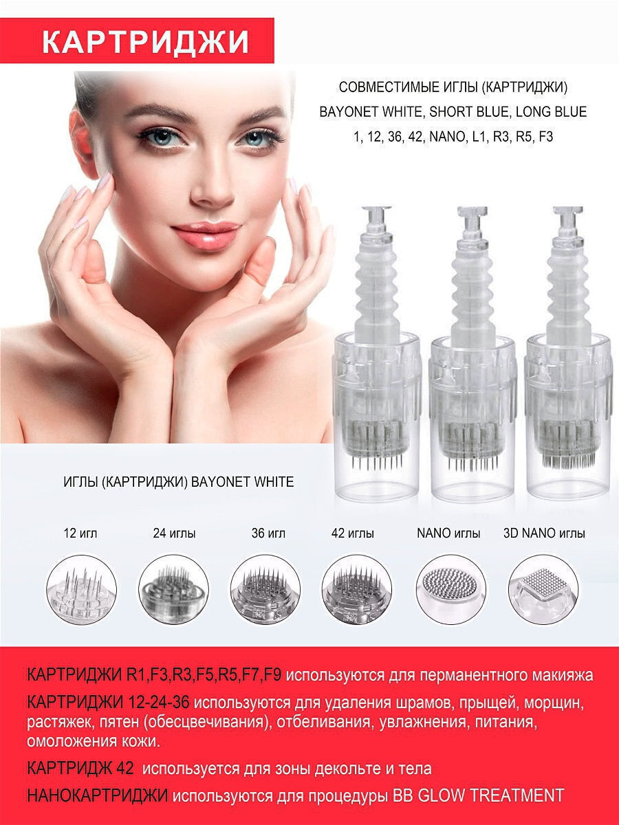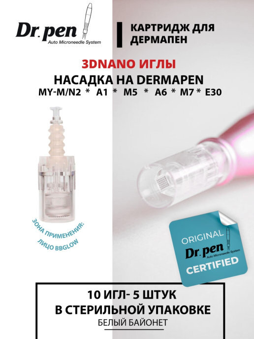 Dr.pen Мезотерапия Картридж для дермапен / мезопен , 3DNano нано иглы, насадка на dermapen My-M/А1/N2/M5/А6/М7/E30, байонет Bayonet, 10 шт.