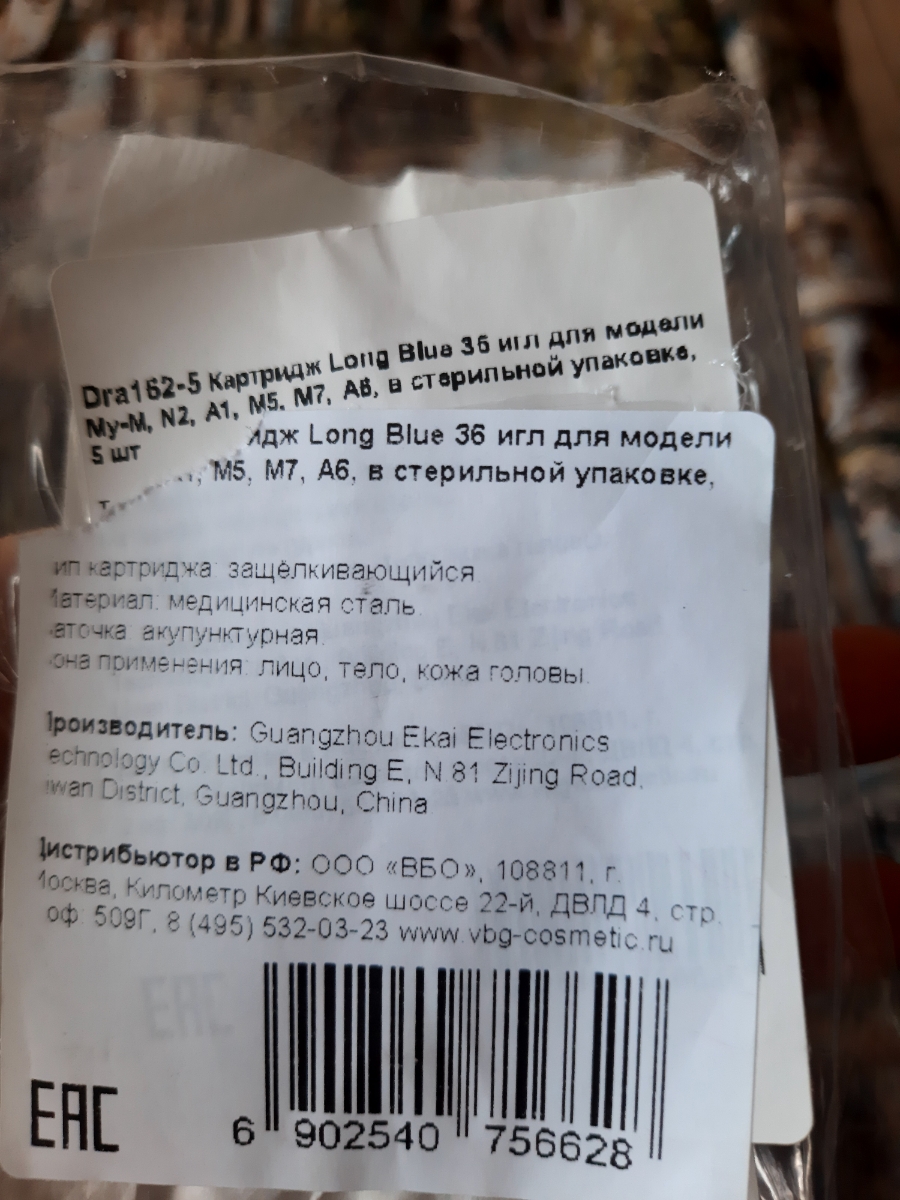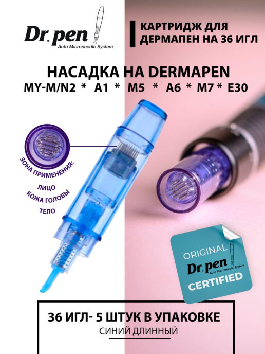 Dr.pen Мезотерапия Картридж для дермапен на 36 игл, насадка на dermapen My-M/А1/N2/M5/А6/М7/E30, синий длинный, 5 шт.