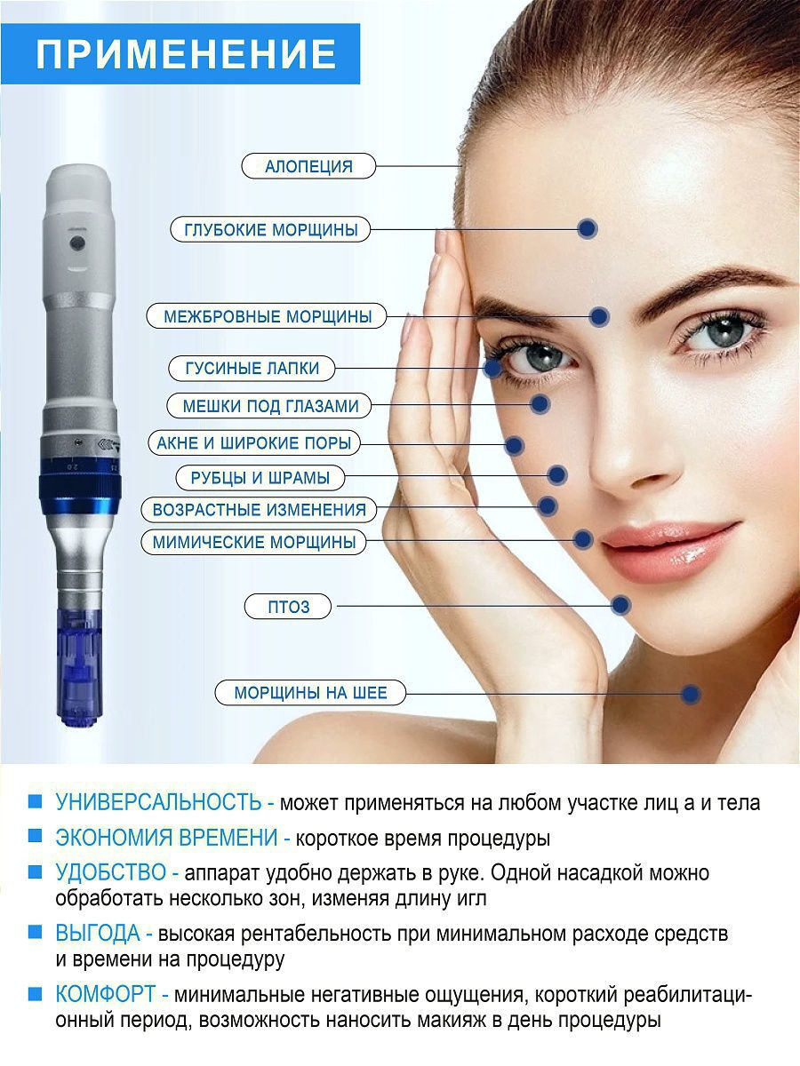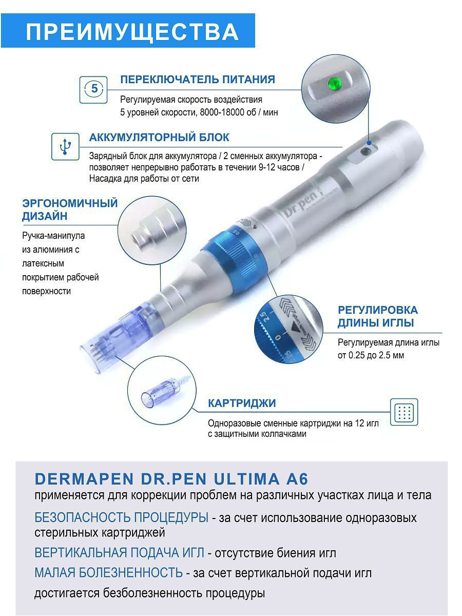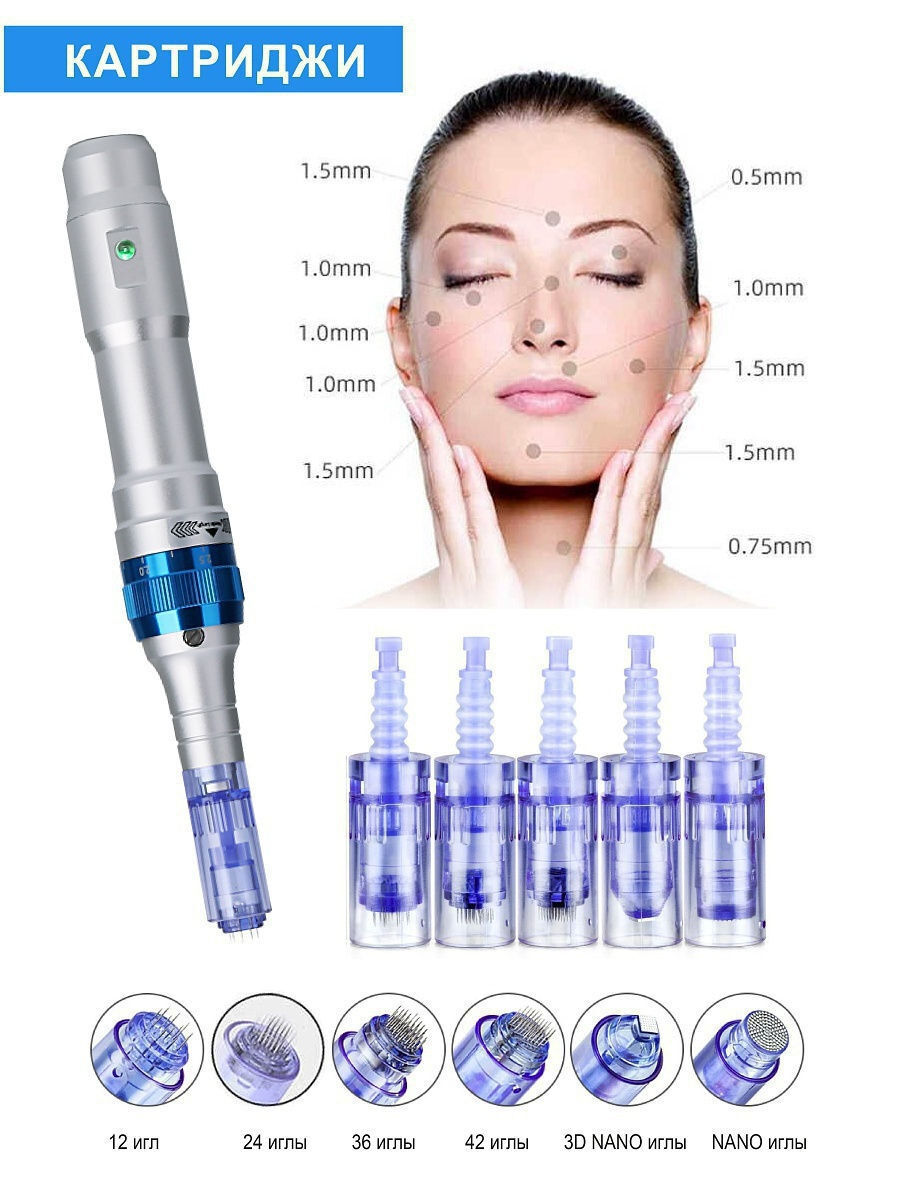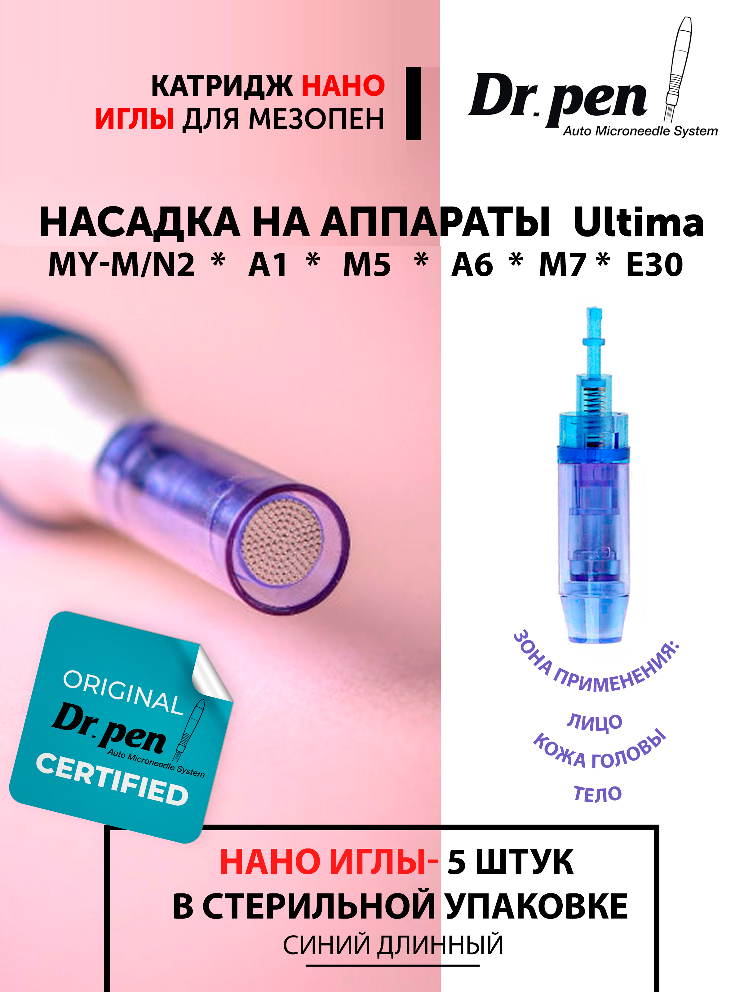Dr.pen Мезотерапия Картридж для дермапен / мезопен , нано иглы, насадка на dermapen My-M/А1/N2/M5/А6/М7/E30, длинный синий, 5 шт.