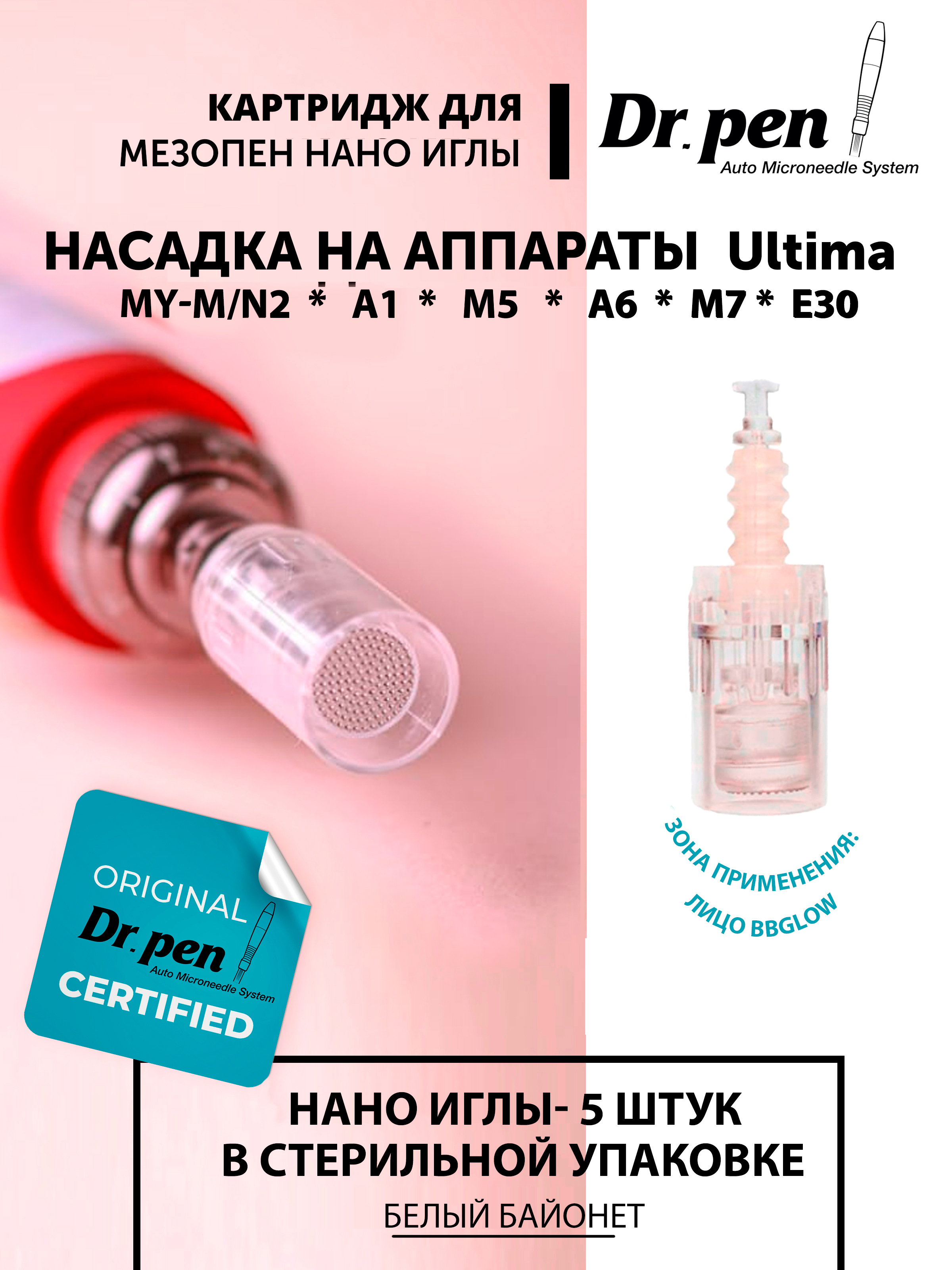 Dr.pen Мезотерапия Картридж для дермапен / мезопен нано иглы, насадка на dermapen My-M/А1/N2/M5/А6/М7/E30, белый Bayonet, 5 шт.