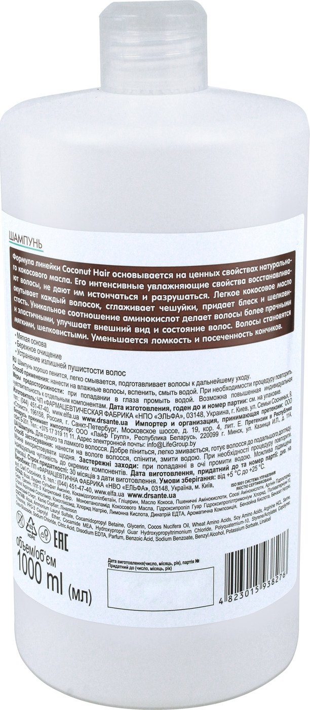 Dr.Sante Coconut Hair Шампунь для сухих и ломких волос Экстраувлажнение с маслом КОКОСА, 1000 мл