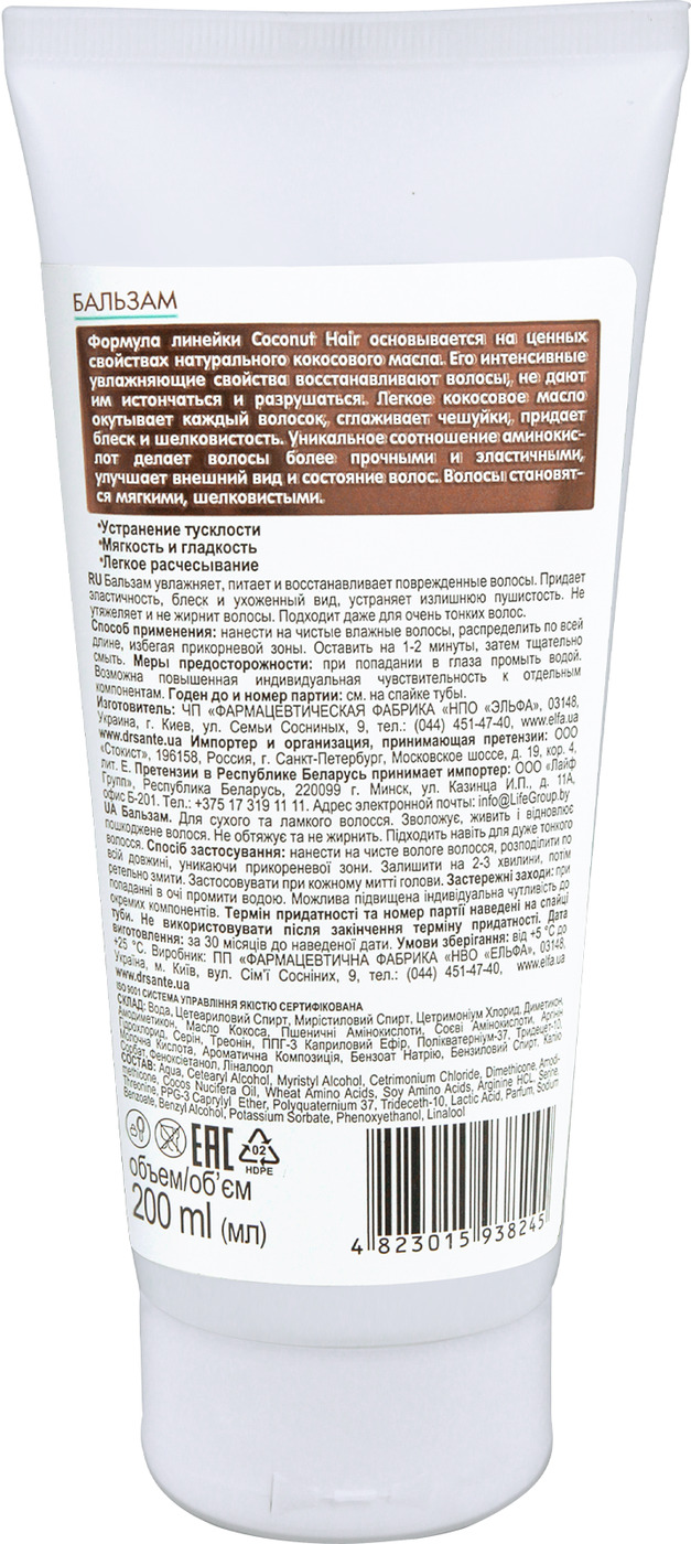 Dr.Sante Coconut Hair Бальзам для сухих и ломких волос Экстраувлажнение с маслом КОКОСА, 200 мл