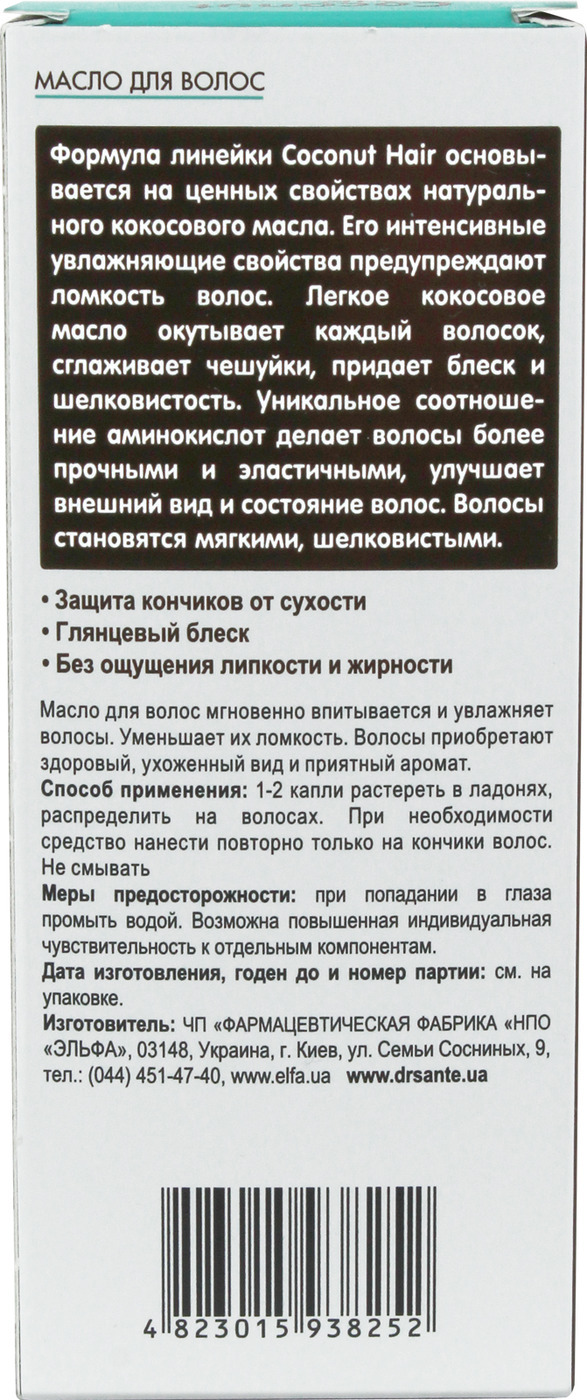 Dr.Sante Coconut Hair Масло для сухих и ломких волос Экстраувлажнение с маслом КОКОСА, 50 мл