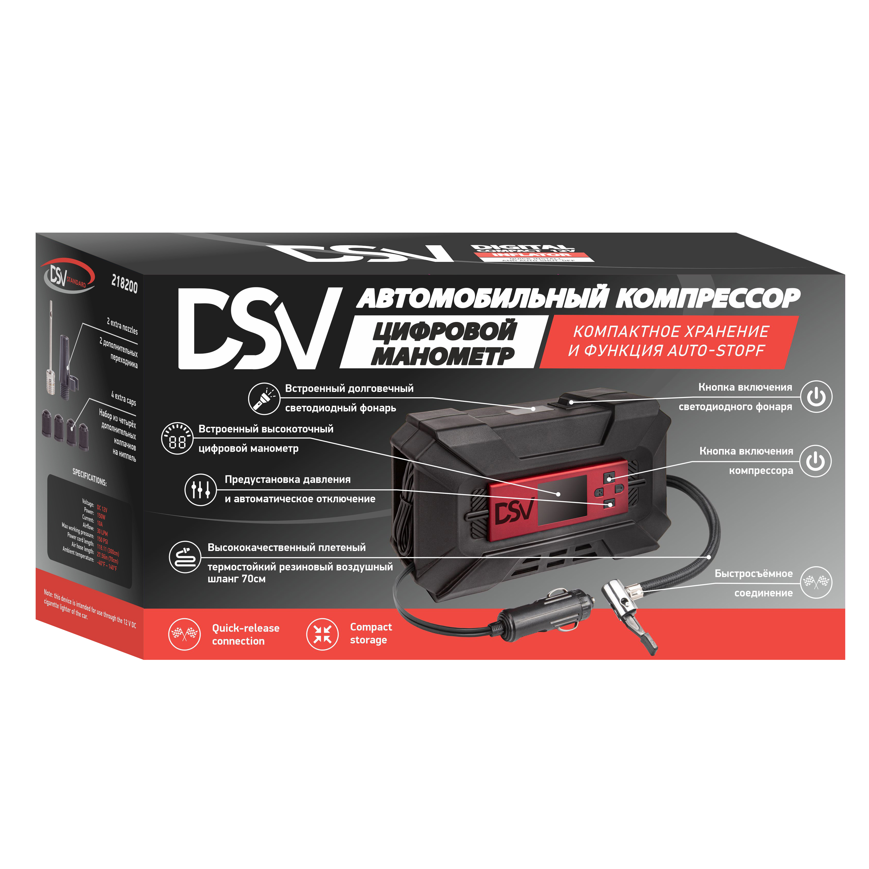 Компрессор DSV Smart усиленный с LED фонарем 45 л/мин 12В с цифровым манометром