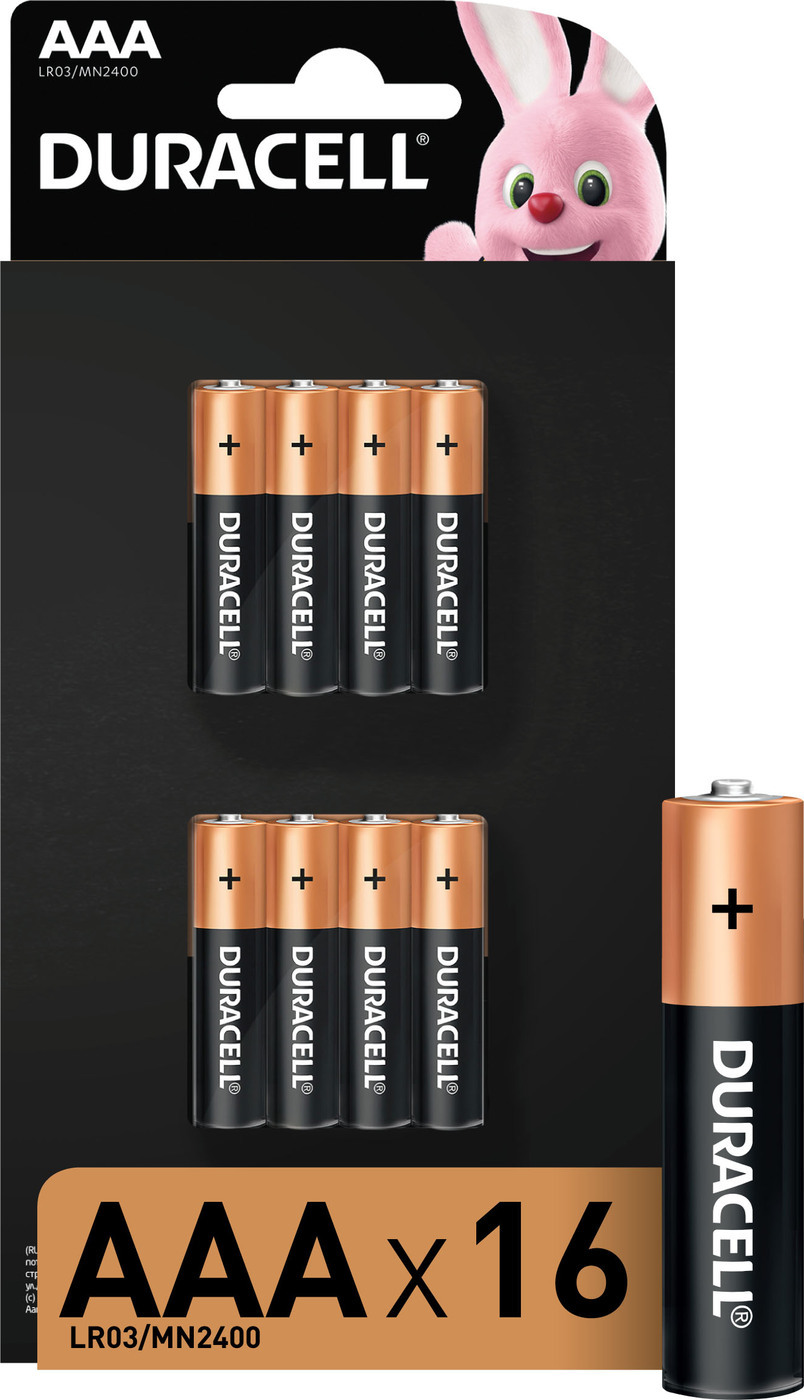 Батарейки щелочные (алкалиновые) Duracell Basic, тип ААA, 1,5В, 16шт (мизинчиковые)