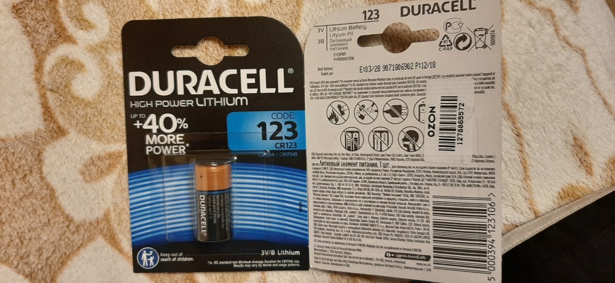 Батарейка литиевая Duracell Ultra, тип CR123, 3В, 1шт