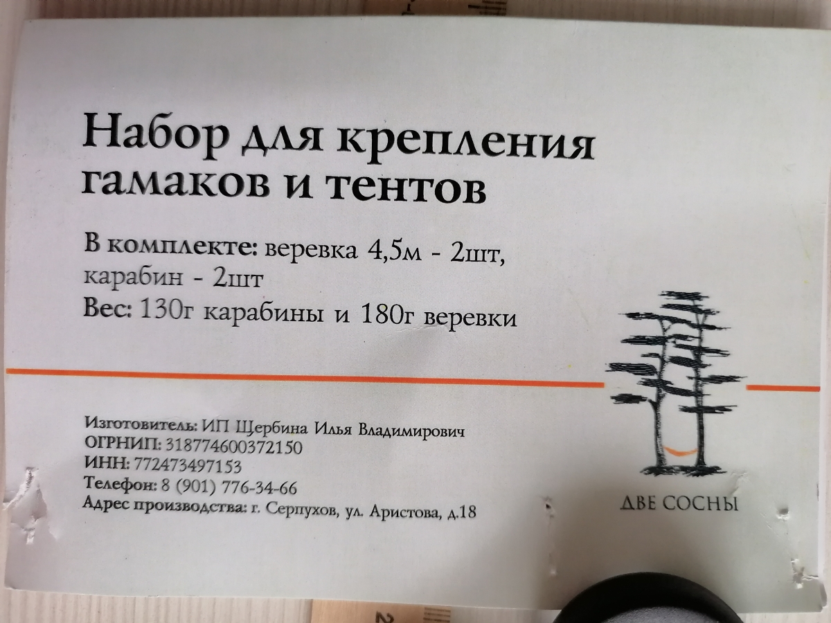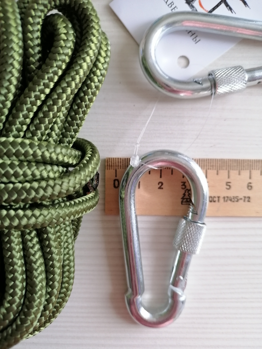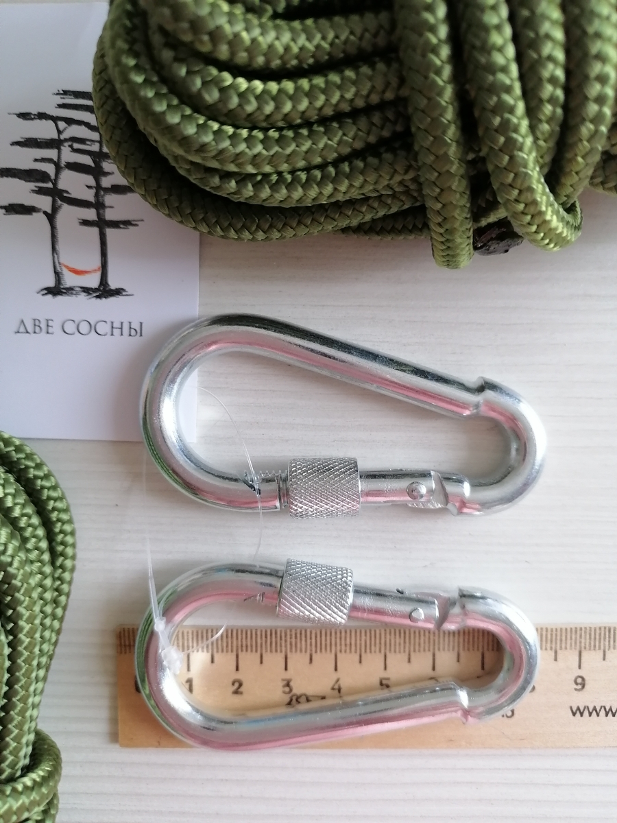 Набор для крепления гамаков и тентов. Веревки и карабины. Олива. Две сосны