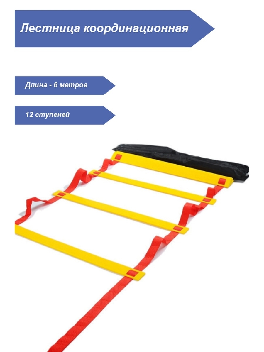 Лестница координационная EasyFit/ тренировочная лестница желто/красный, 6 м (12 перекладин)