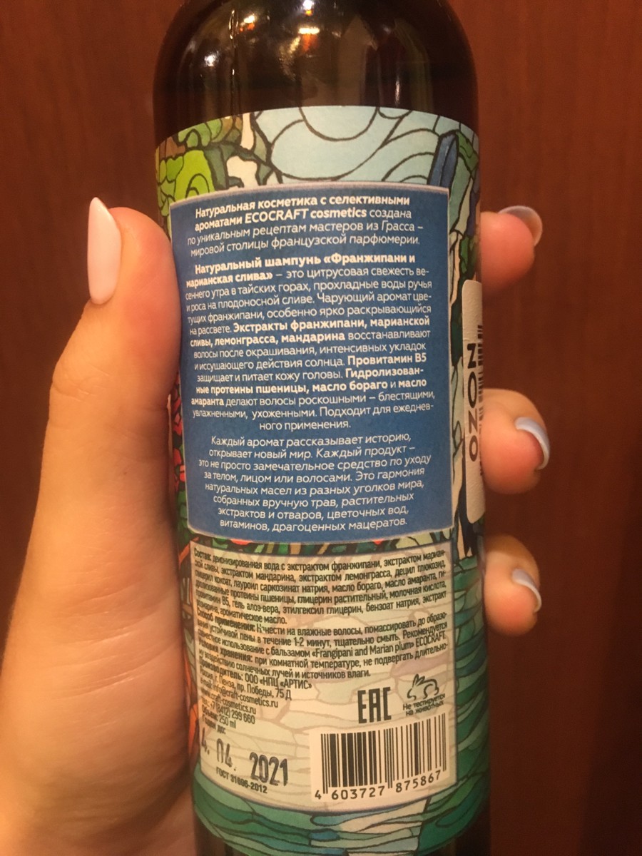 Шампунь для укрепления и восстановления волос Франжипани и марианская слива, 250 мл, ECOCRAFT