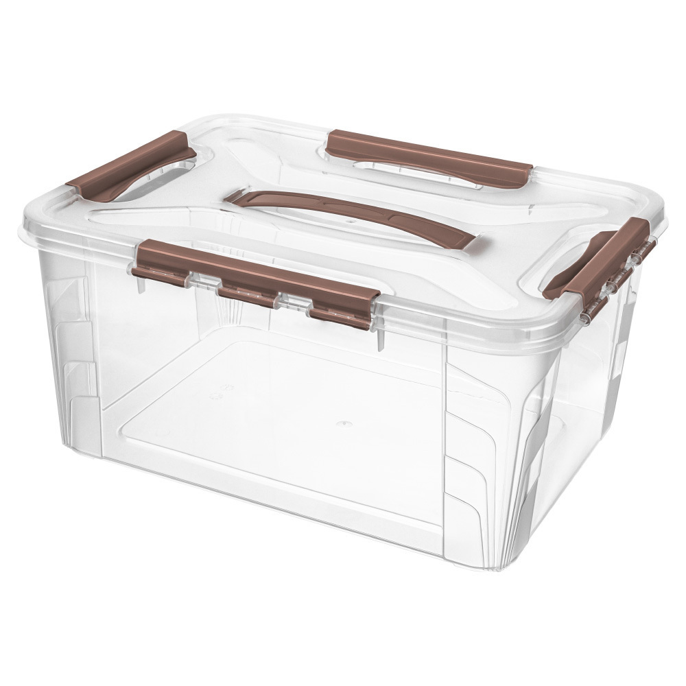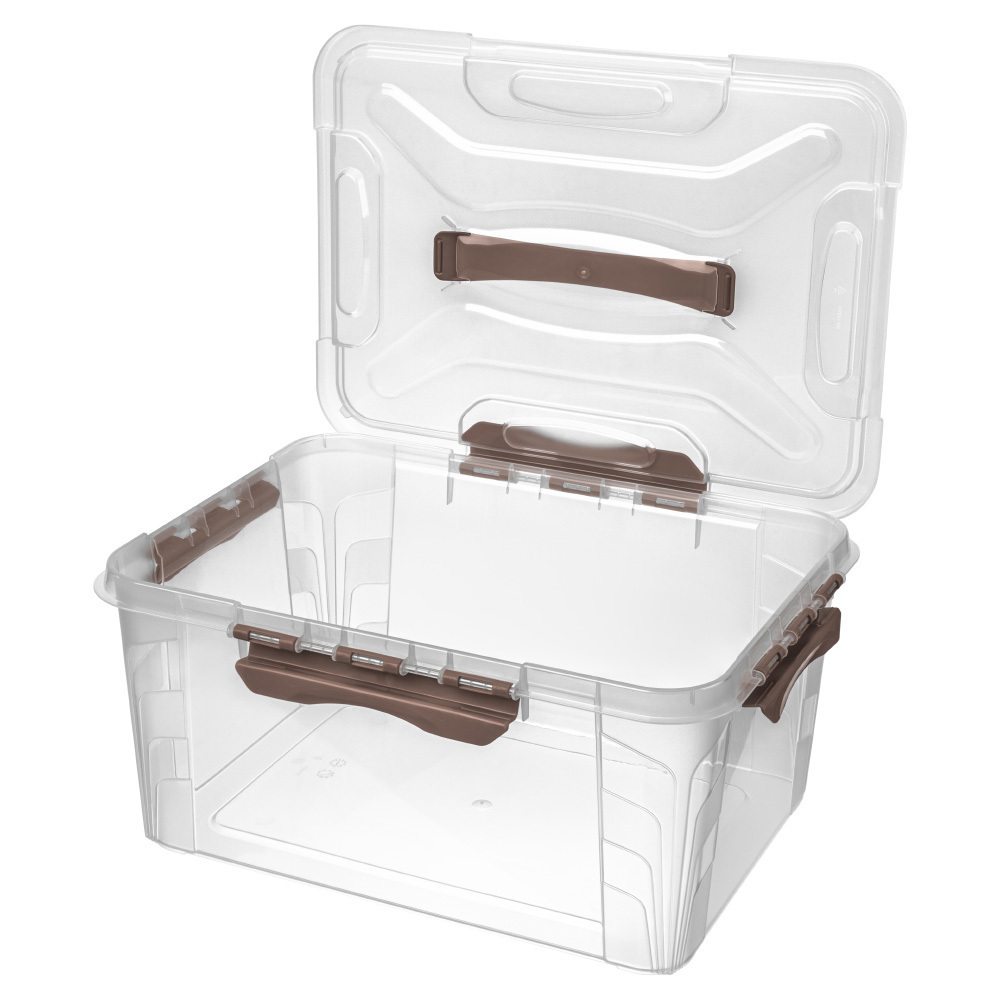 Ящик для хранения универсальный с замками и ручкой "GRAND BOX", 39х29х18 см., 15,3 л. (Коричневый)