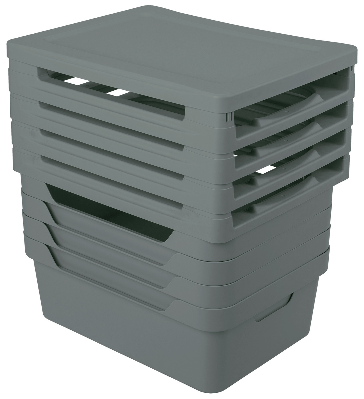 Ящик для хранения универсальный с замками и ручкой "GRAND BOX", 290х190х180 мм, 6,65л (Светло-серый)