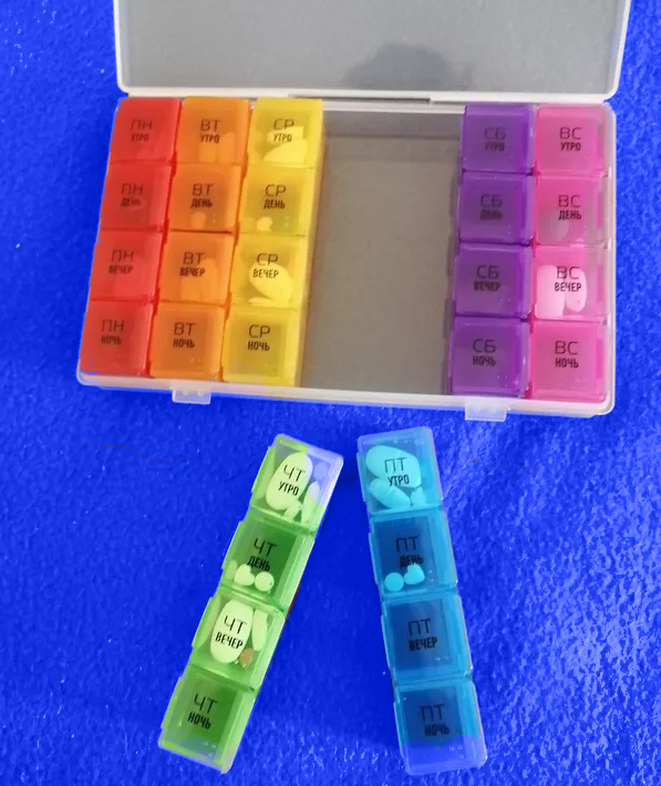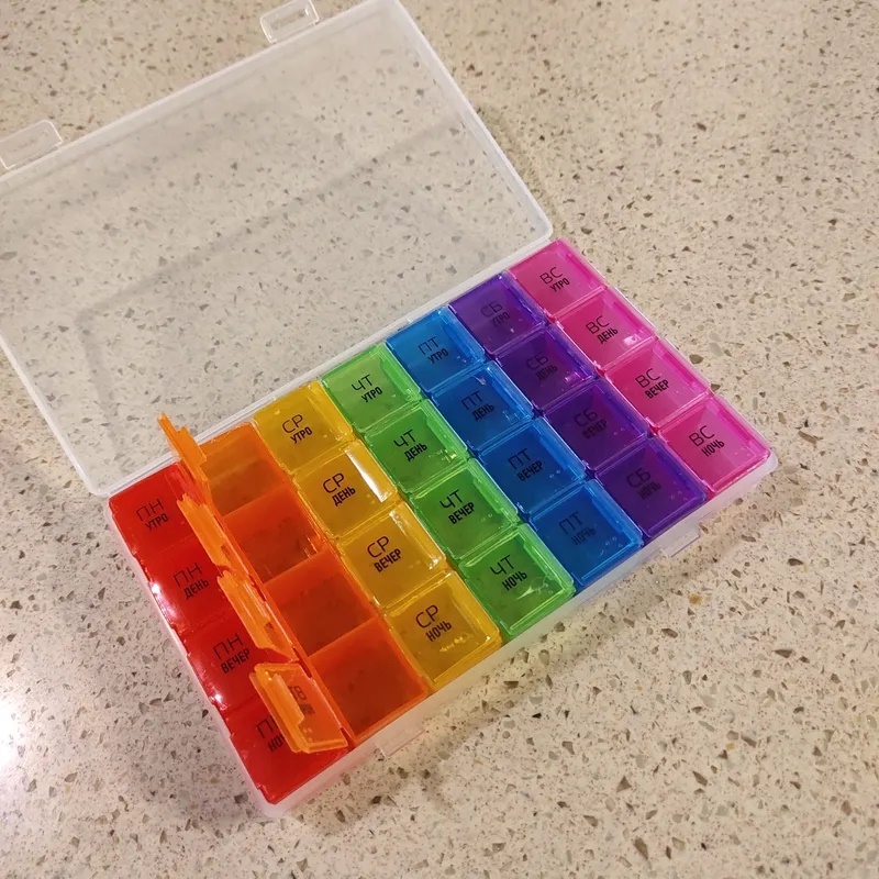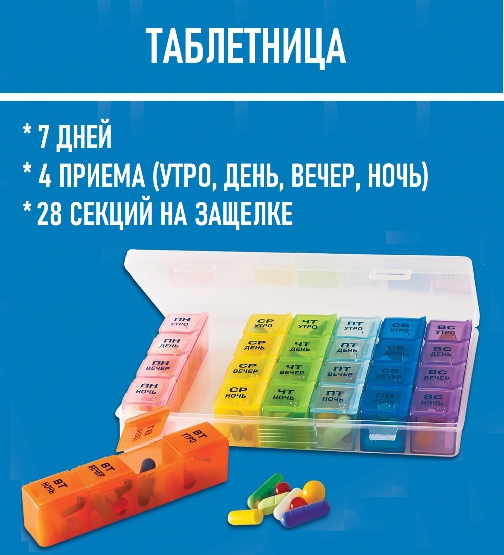 Таблетница ECOS Pillbox 28 секций, 7 дней (4 приема - утро, день, вечер, ночь)