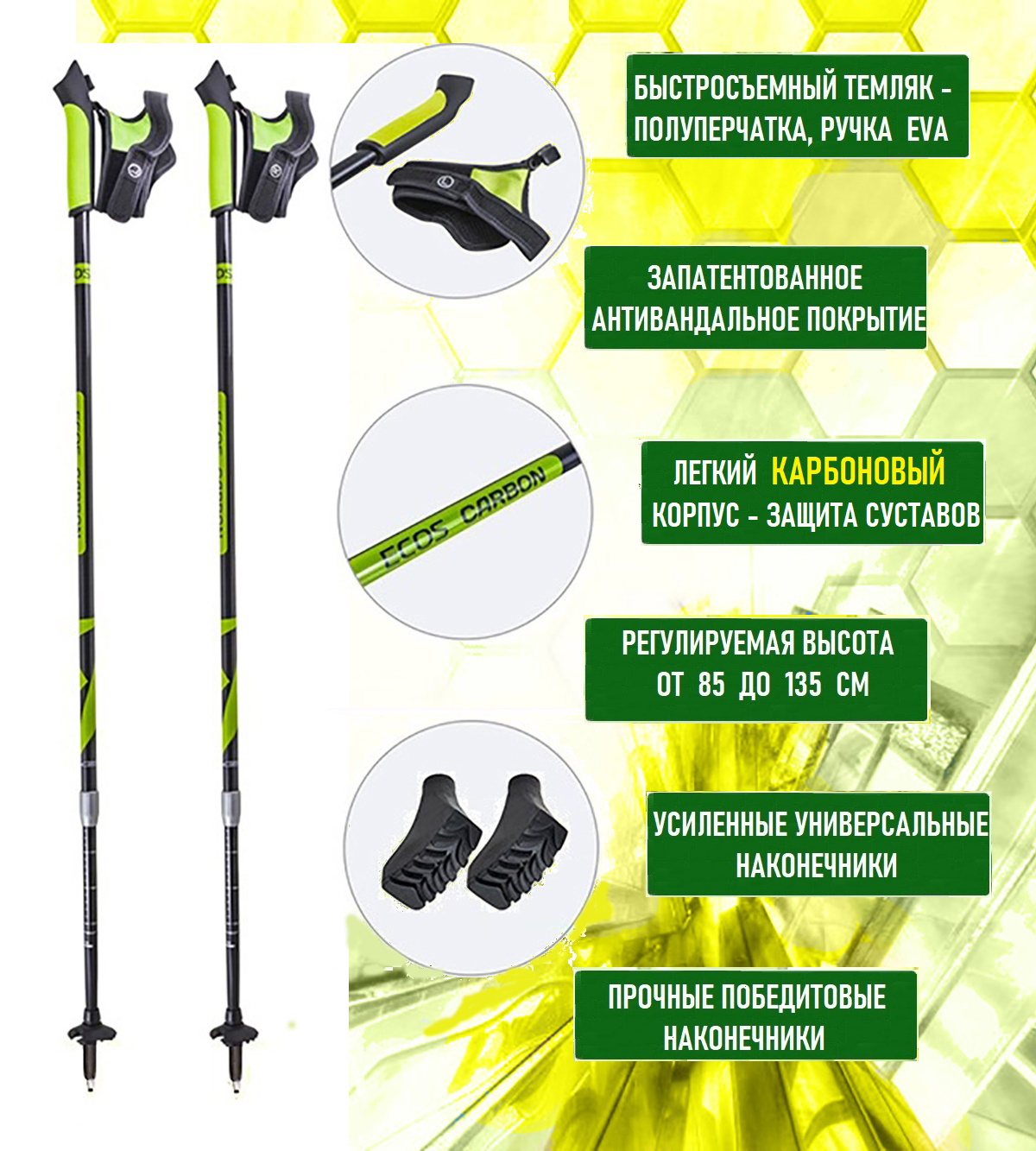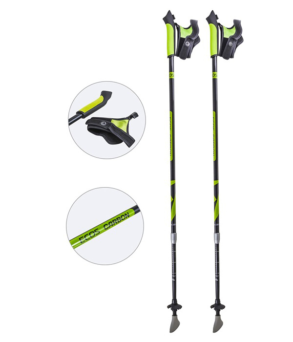 Карбоновые телескопические палки для скандинавской ходьбы ECOS Carbon 30%, салатовые