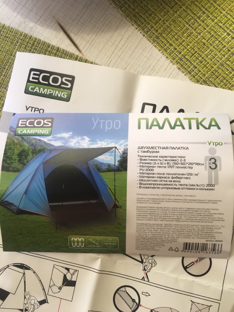 Палатка 3-местная Ecos Camping Утро с тамбуром 3-местная