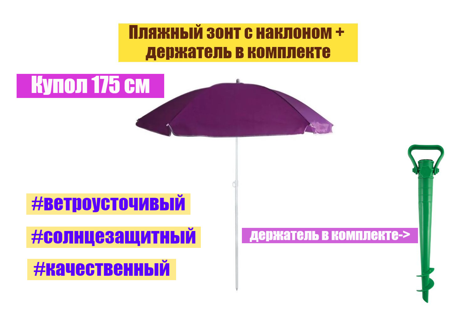 Зонт пляжный ECOS фиолетовый, с наклоном + держатель для зонта в комплекте