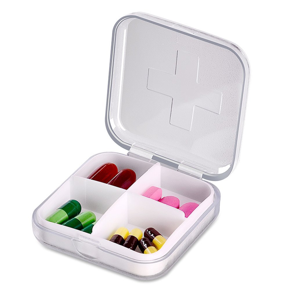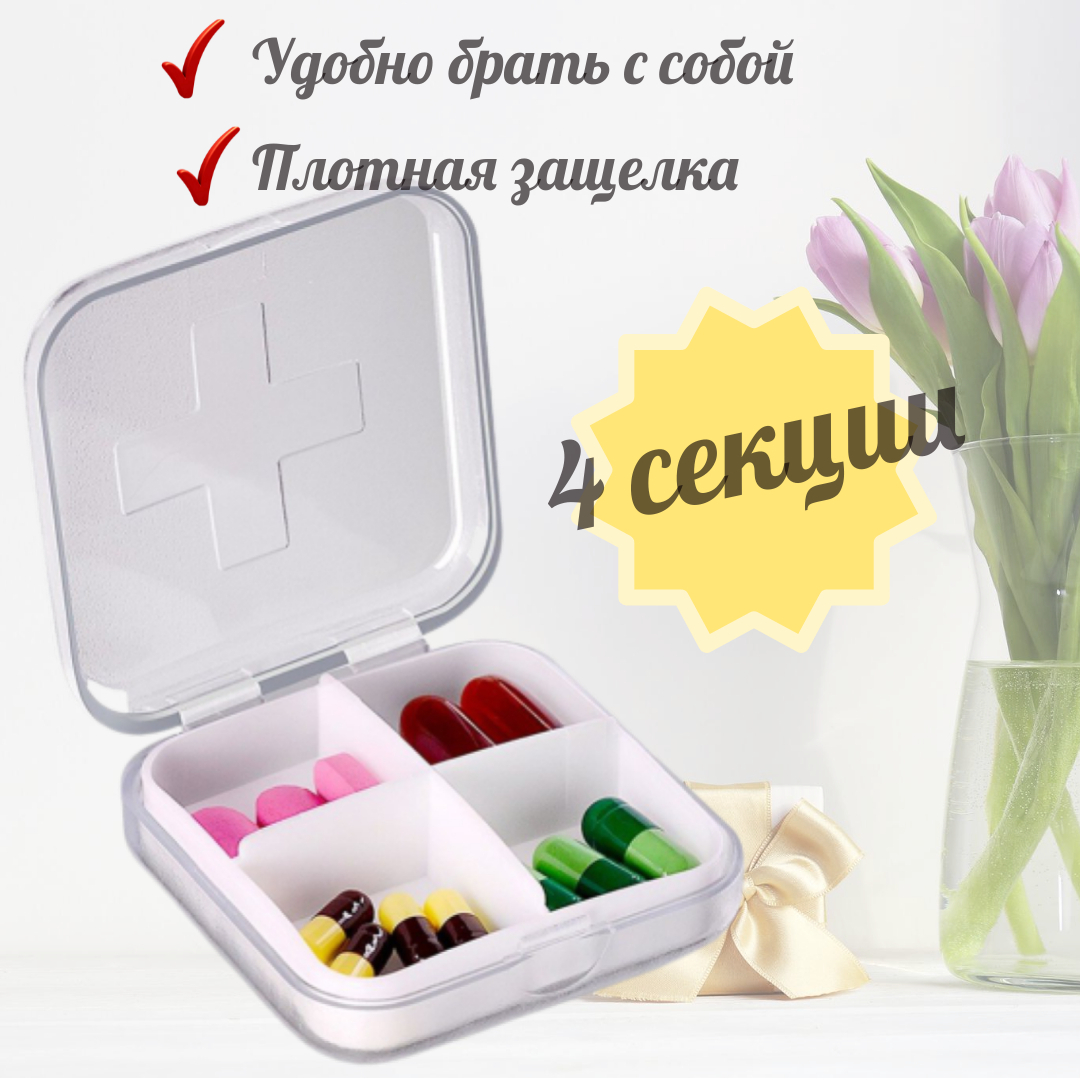 Таблетница 4 секции, 6,8*6,8*2,6 см, зеленый