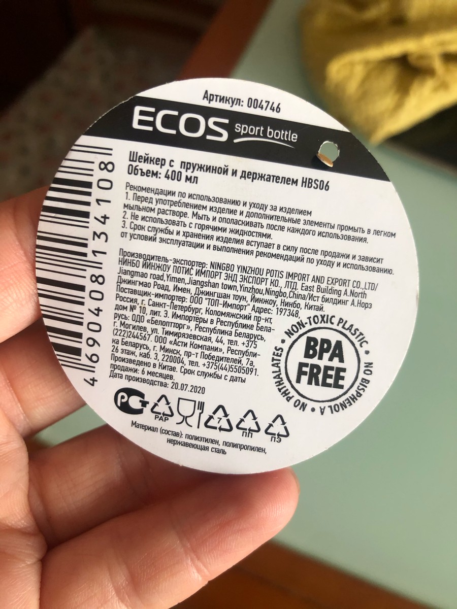 Шейкер спортивный,Sport Shaker HBS06, 400 млEcos,0,4л.,белый, голубой