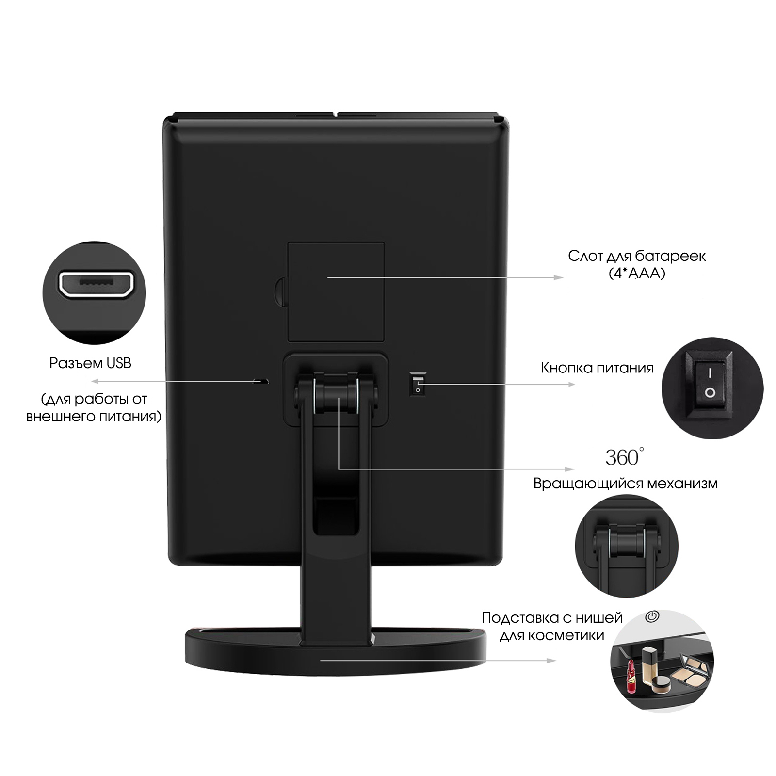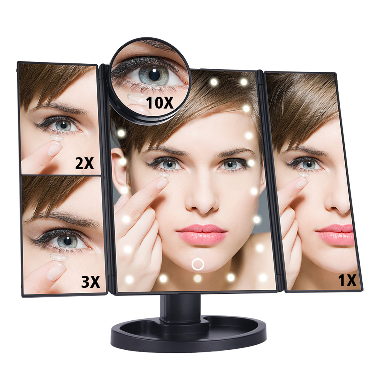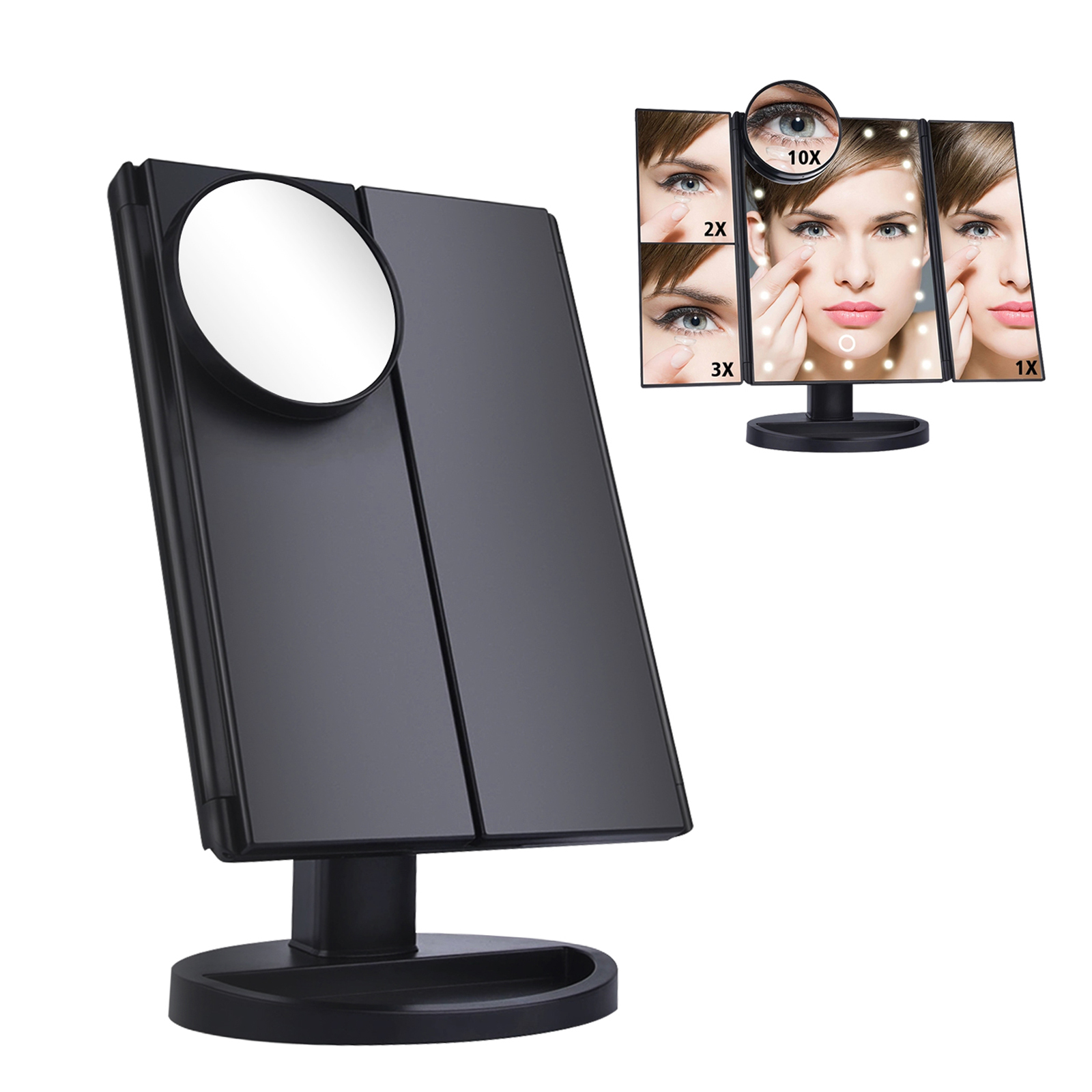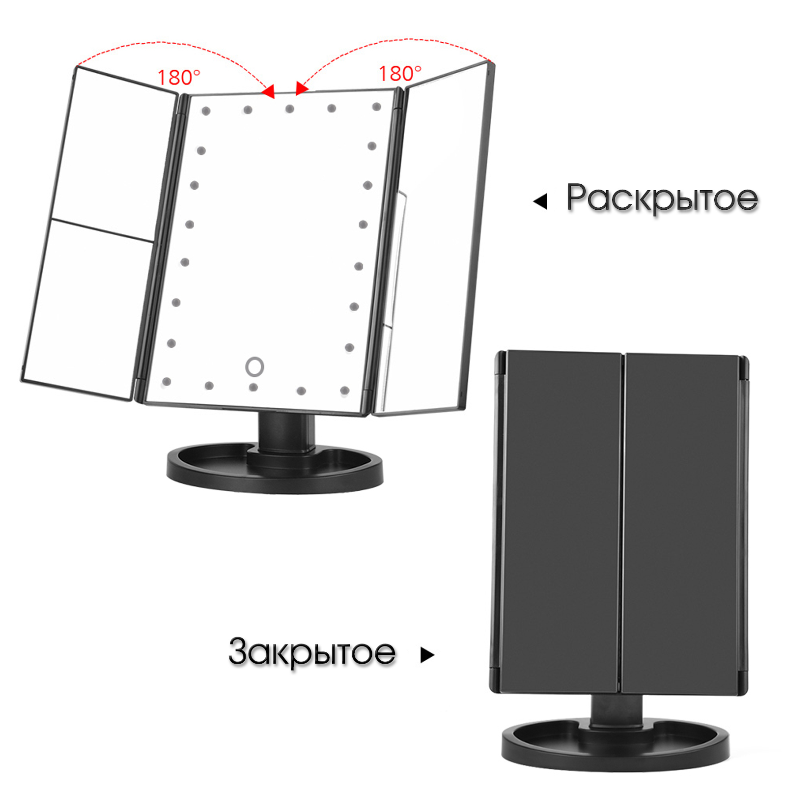 Зеркало косметическое для макияжа с Led подсветкой и увеличением раскладное настольное