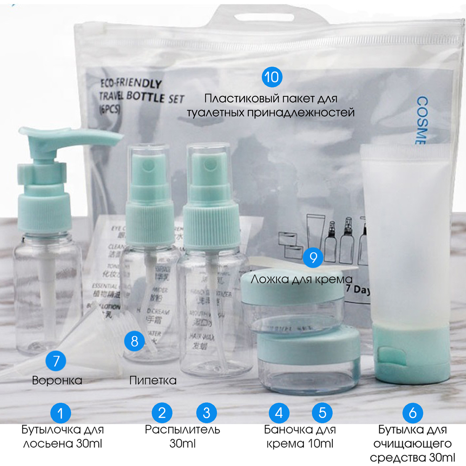 Дорожный набор флаконов, 10 предметов: тюбики, набор баночек для путешествий, для косметики, шампуня