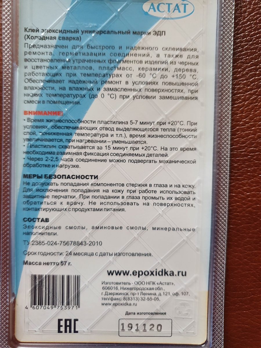 Холодная сварка, Эпоксидный клей ЭДП, 57 гр