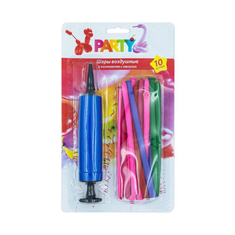 Воздушные шары с ручным насосом набор для праздника, 10 шт.