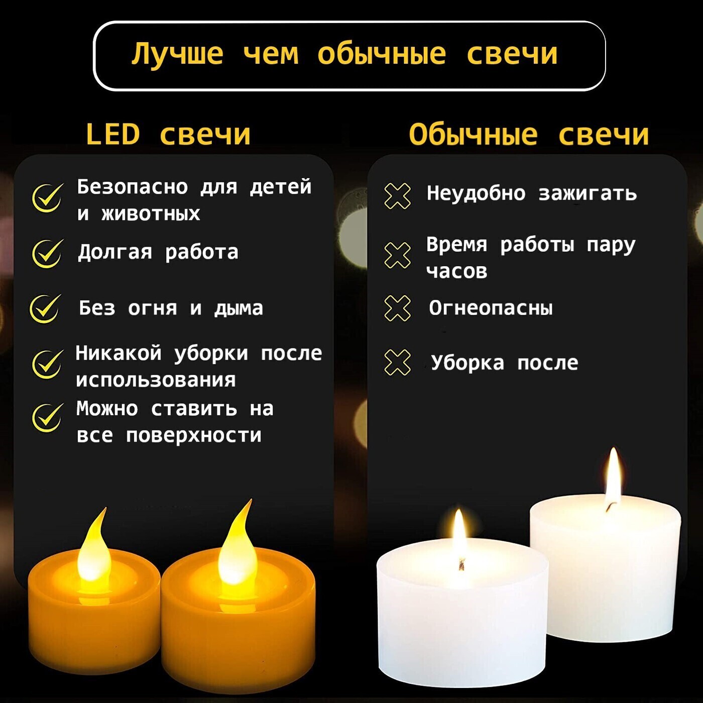 Набор Электрических чайных свечей из 12шт, Батарейки в комлекте