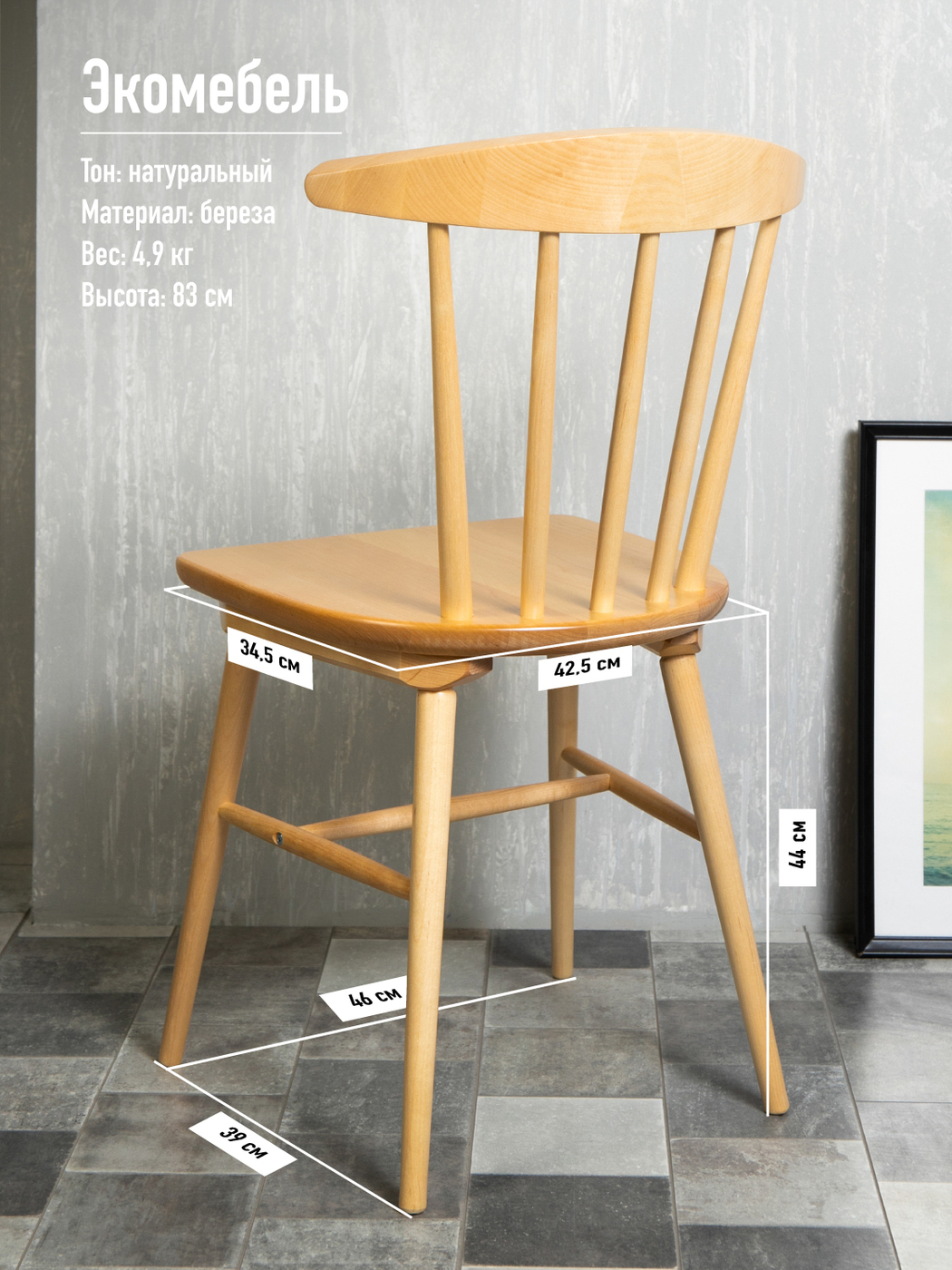 Стул из массива дерева "Скандинавия", натуральный, 1 шт.