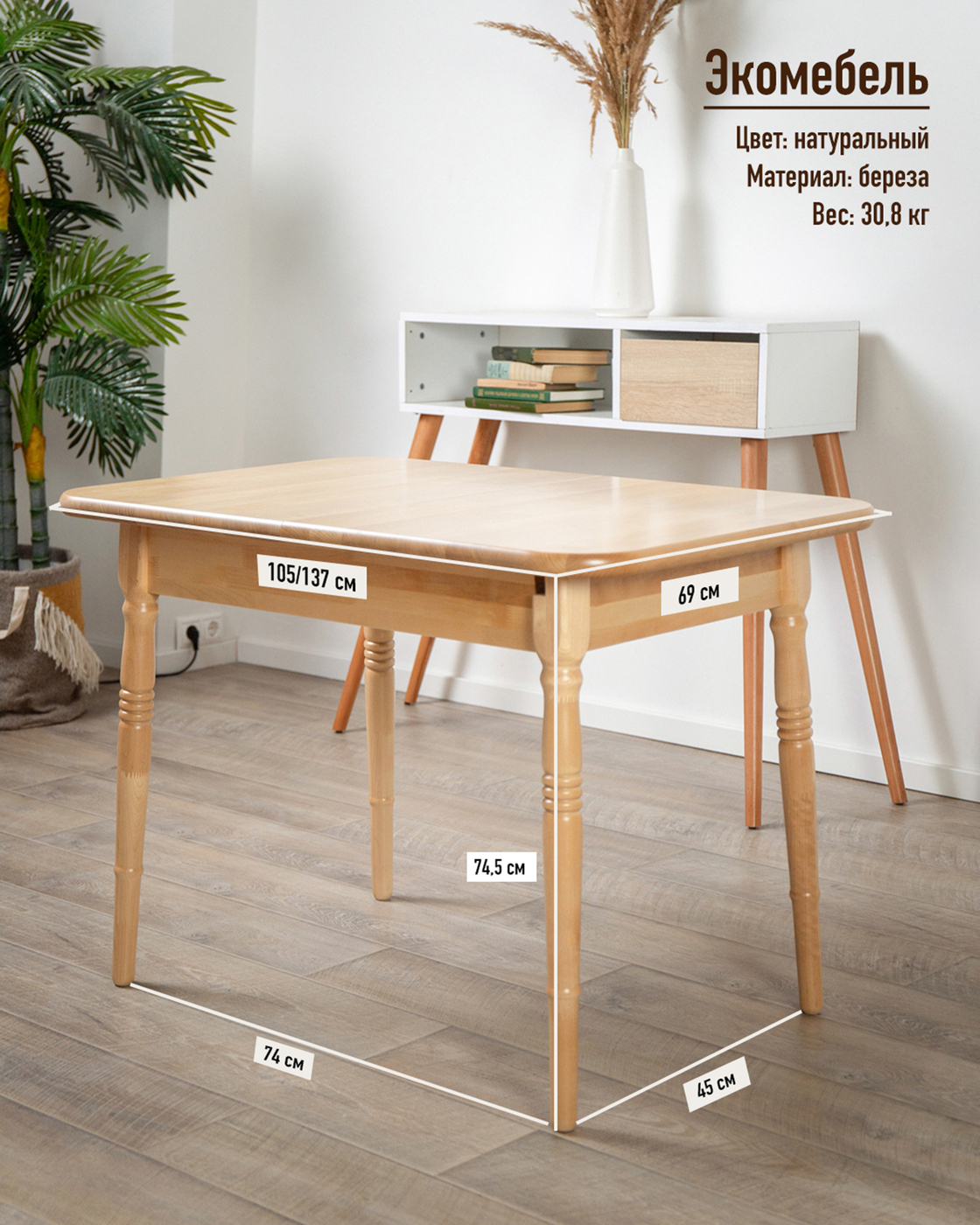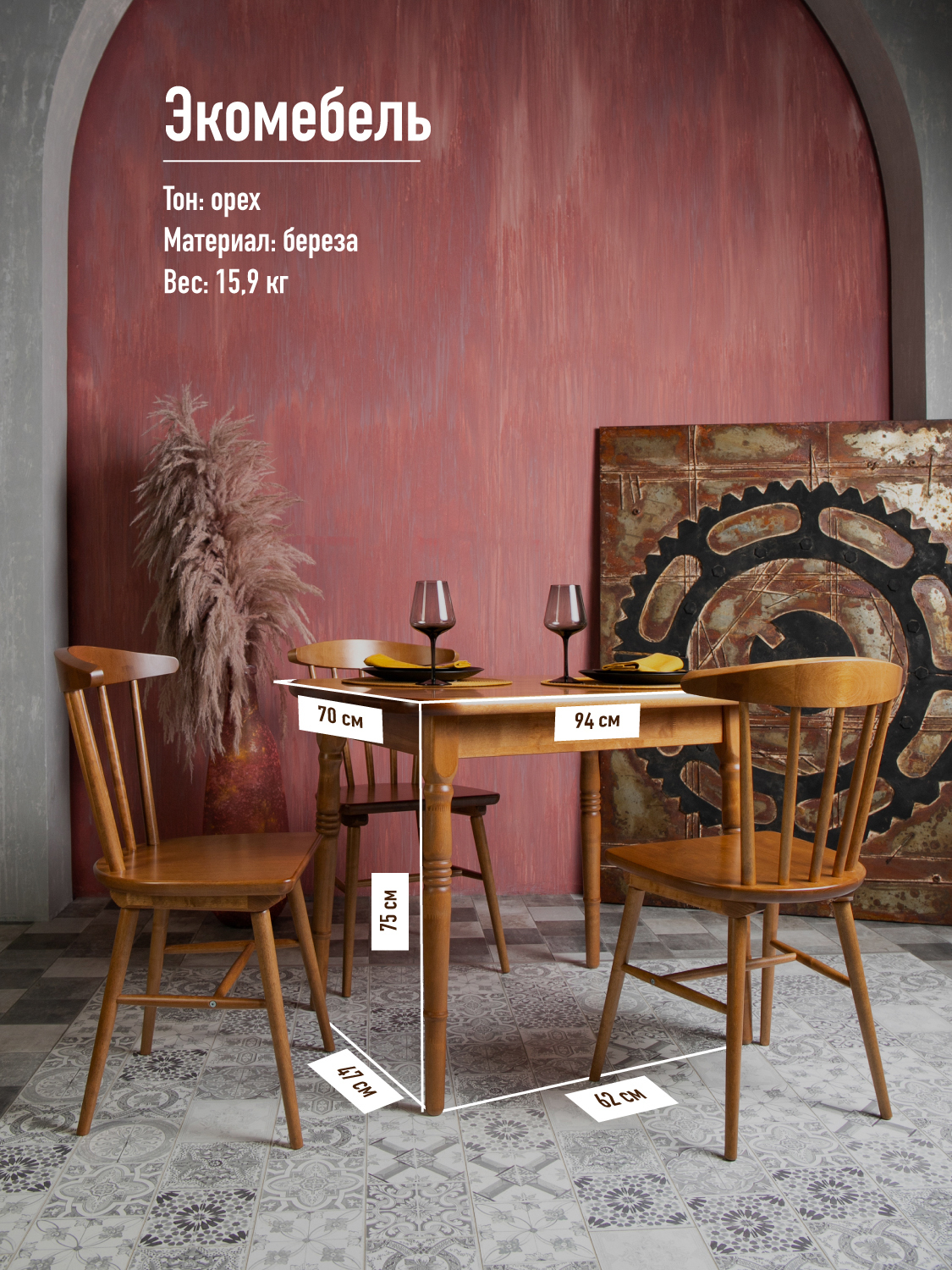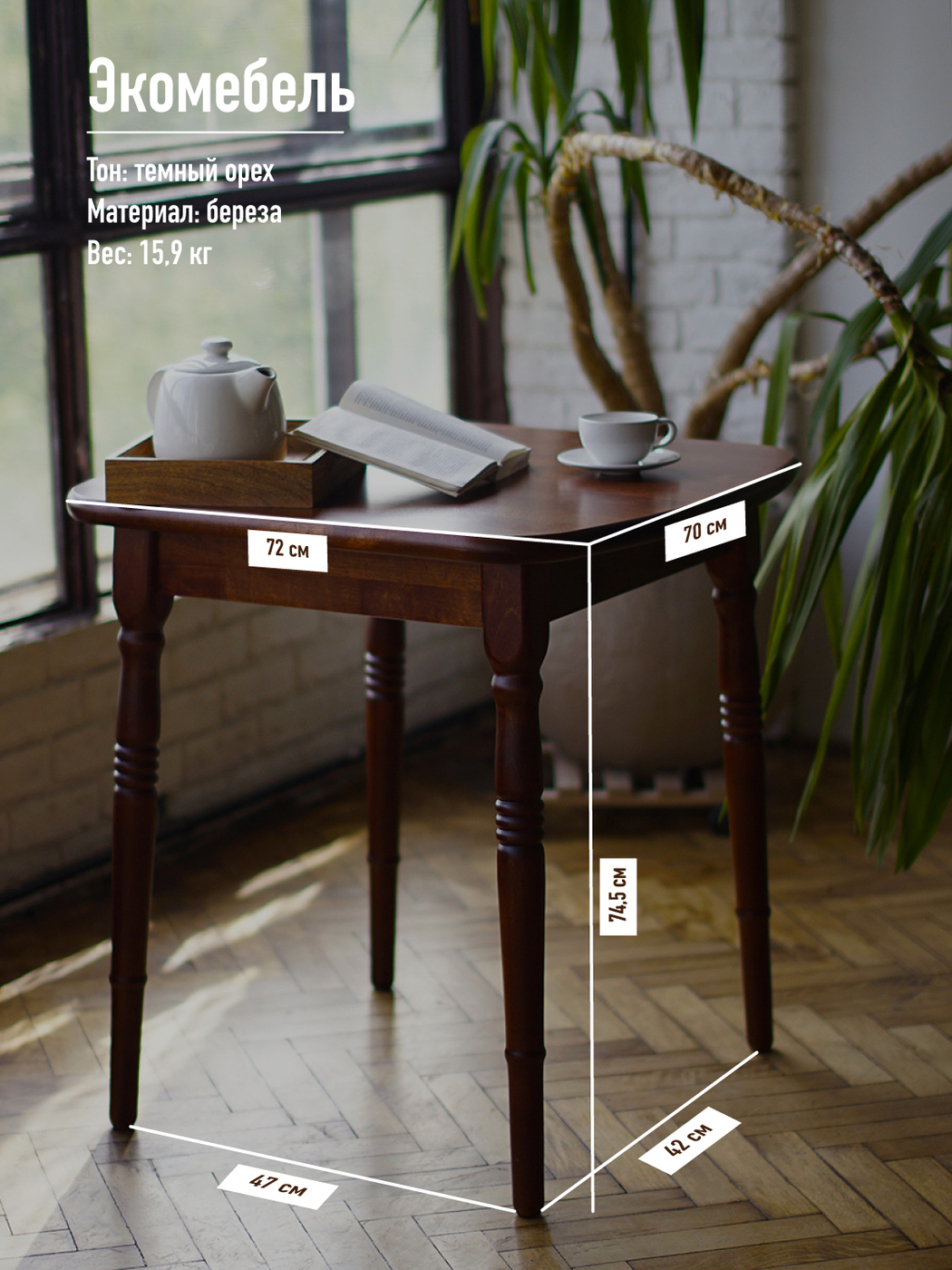 Стол обеденный Нераскладной из массива дерева "Комплимент", Орех, 70х93х75 см