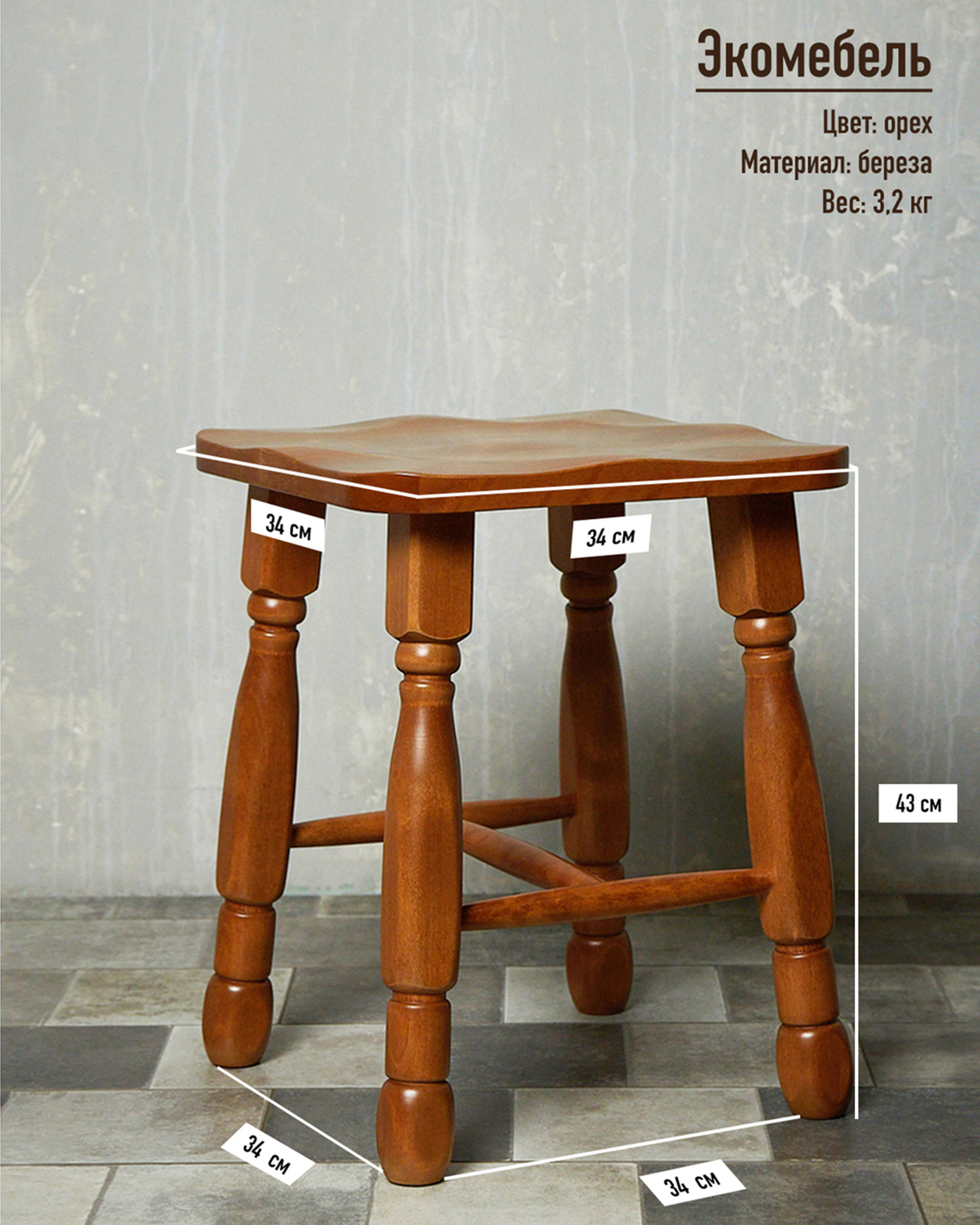 Табурет из массива дерева "Гранд" Орех, 2 шт.