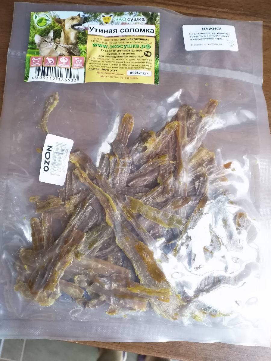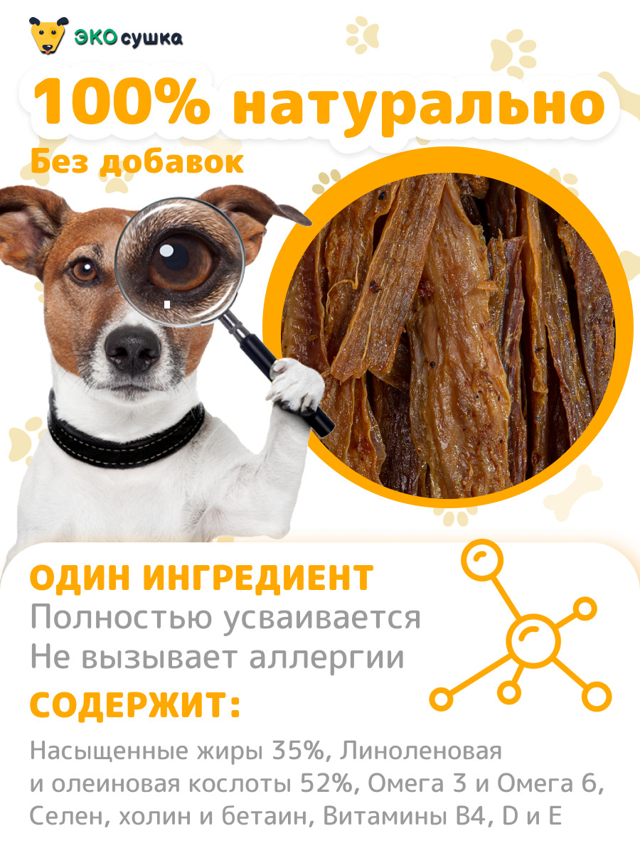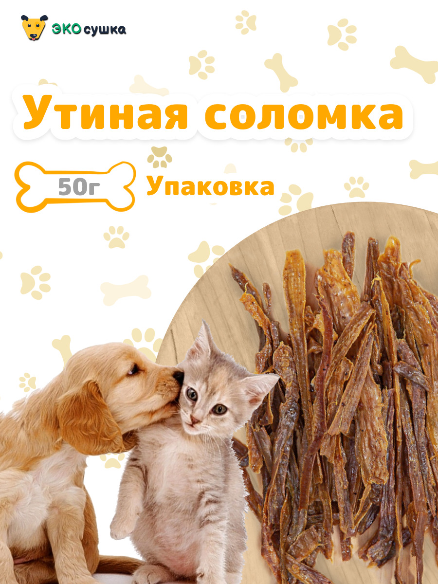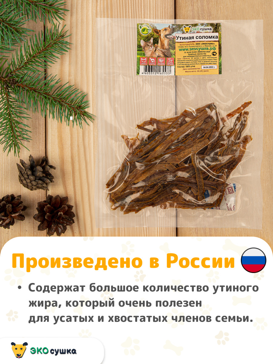 Лакомство для собак и кошек сушеное "ЭКОсушка" Утиная соломка, 50 грамм / нежные кусочки