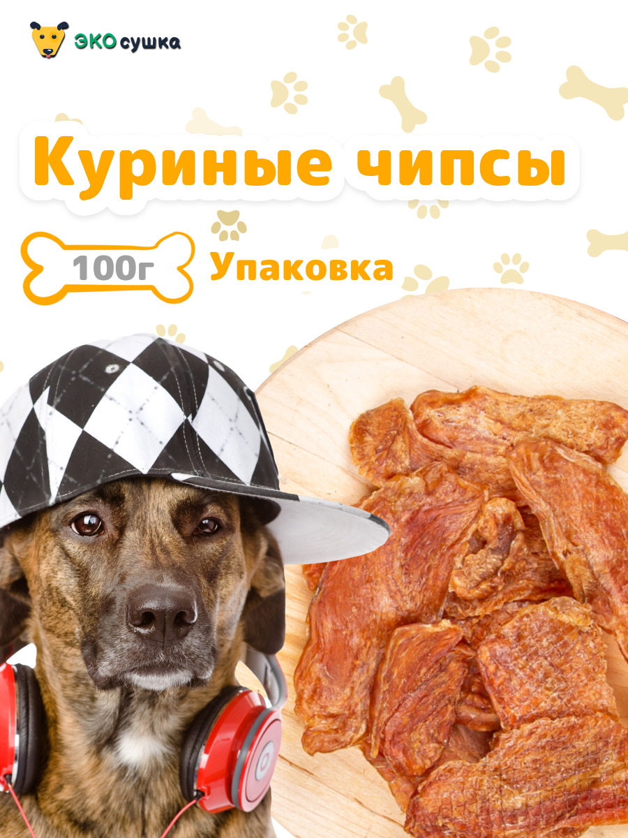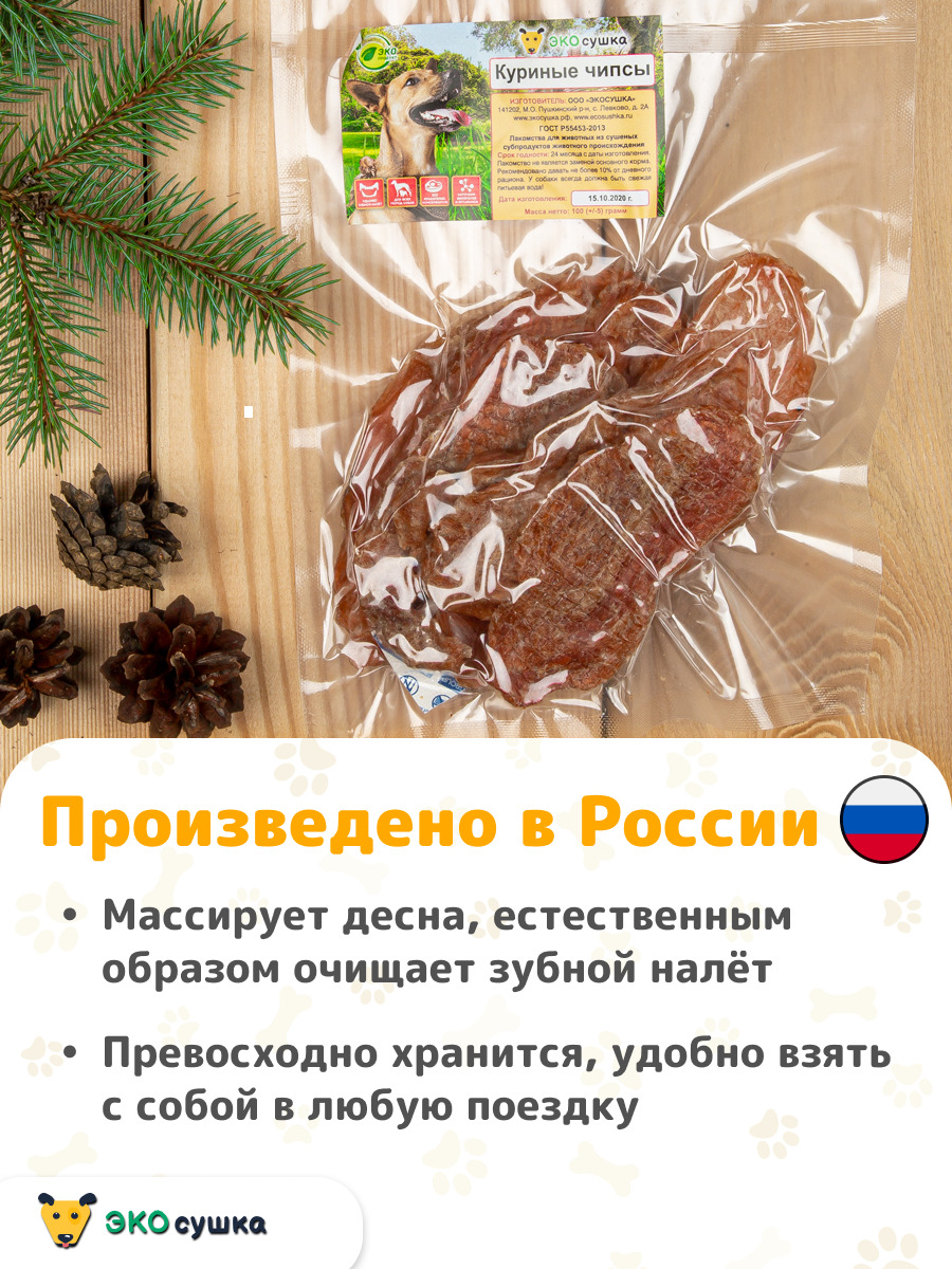 Лакомство для собак сушеное "ЭКОсушка" Куриные чипсы 100 гр