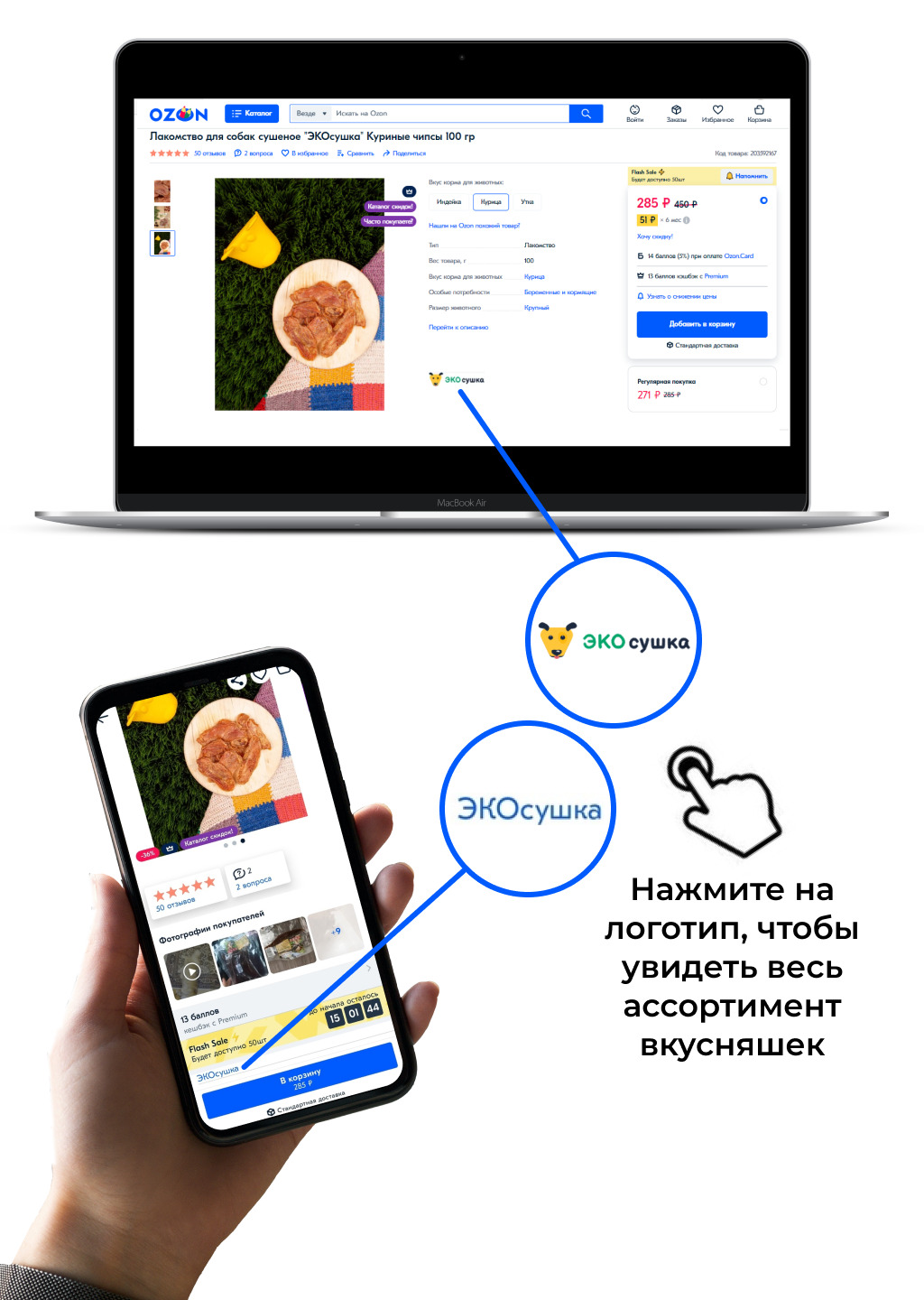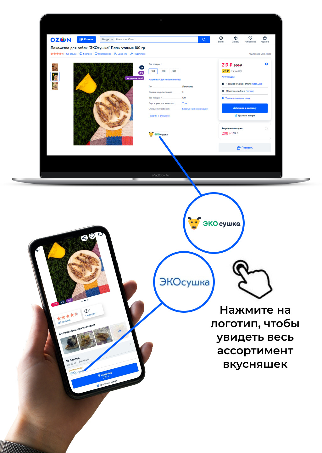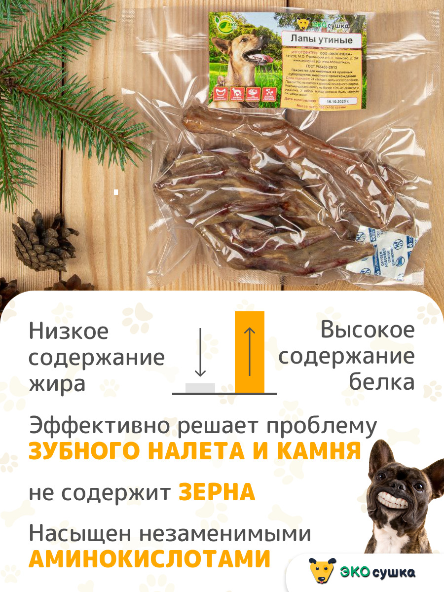 Лакомство для собак "ЭКОсушка" Лапы утиные 100 гр