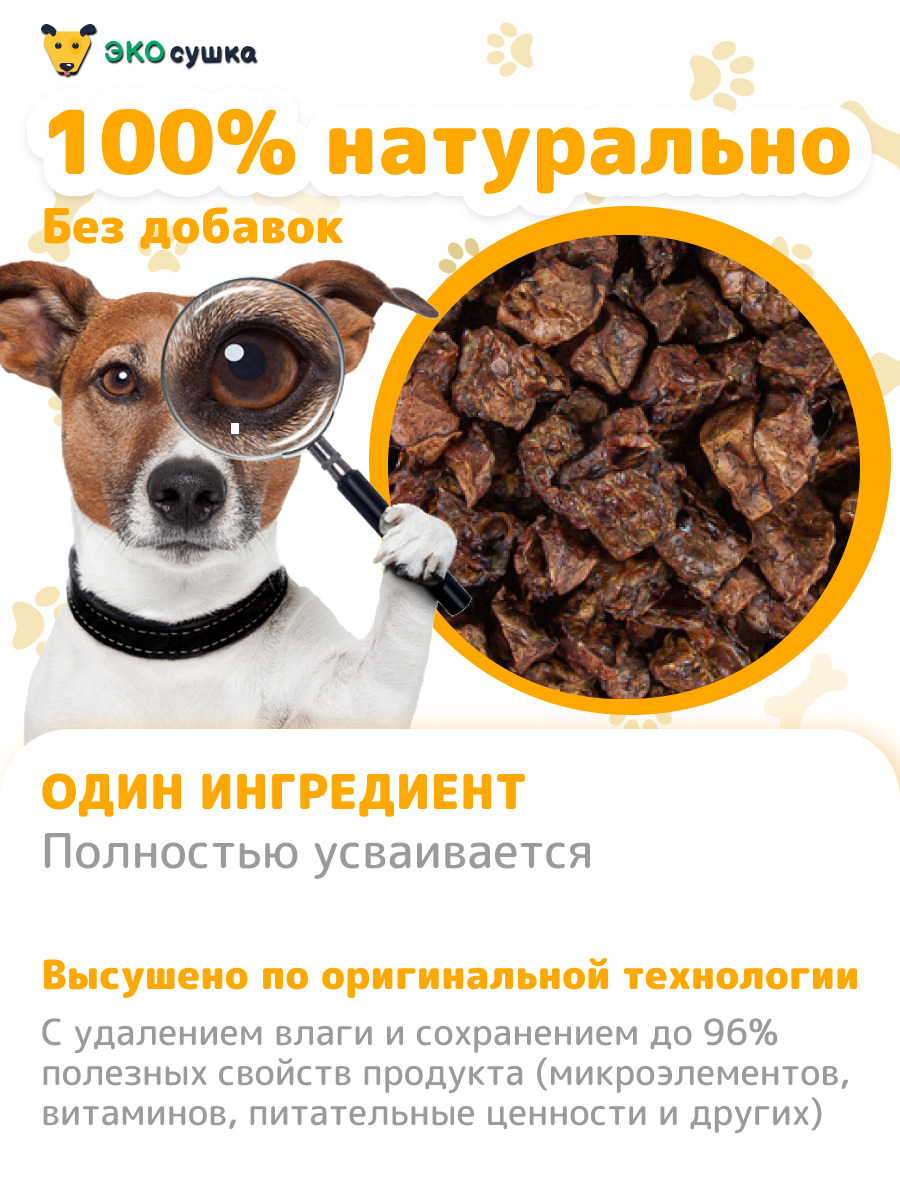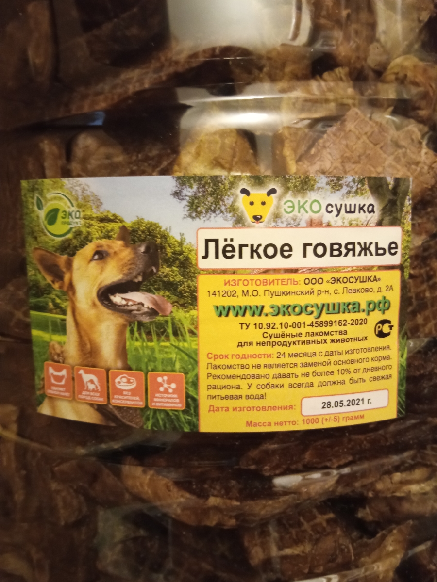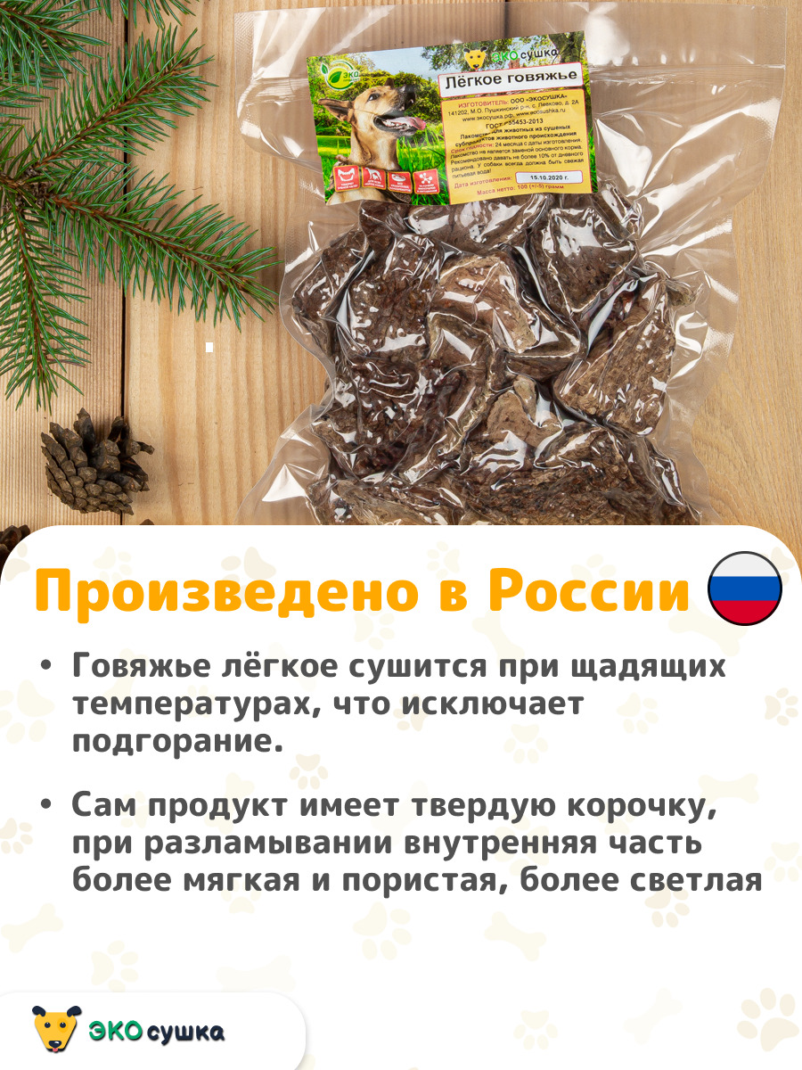 Лакомство для собак сушеное "Экосушка" Лёгкое говяжье 100 гр