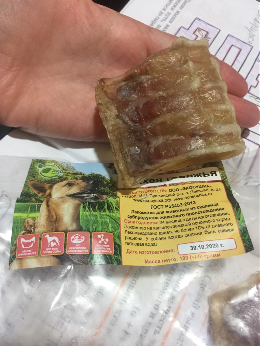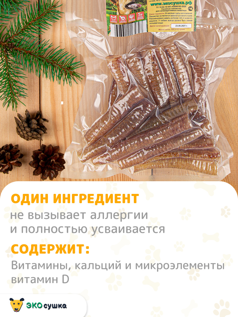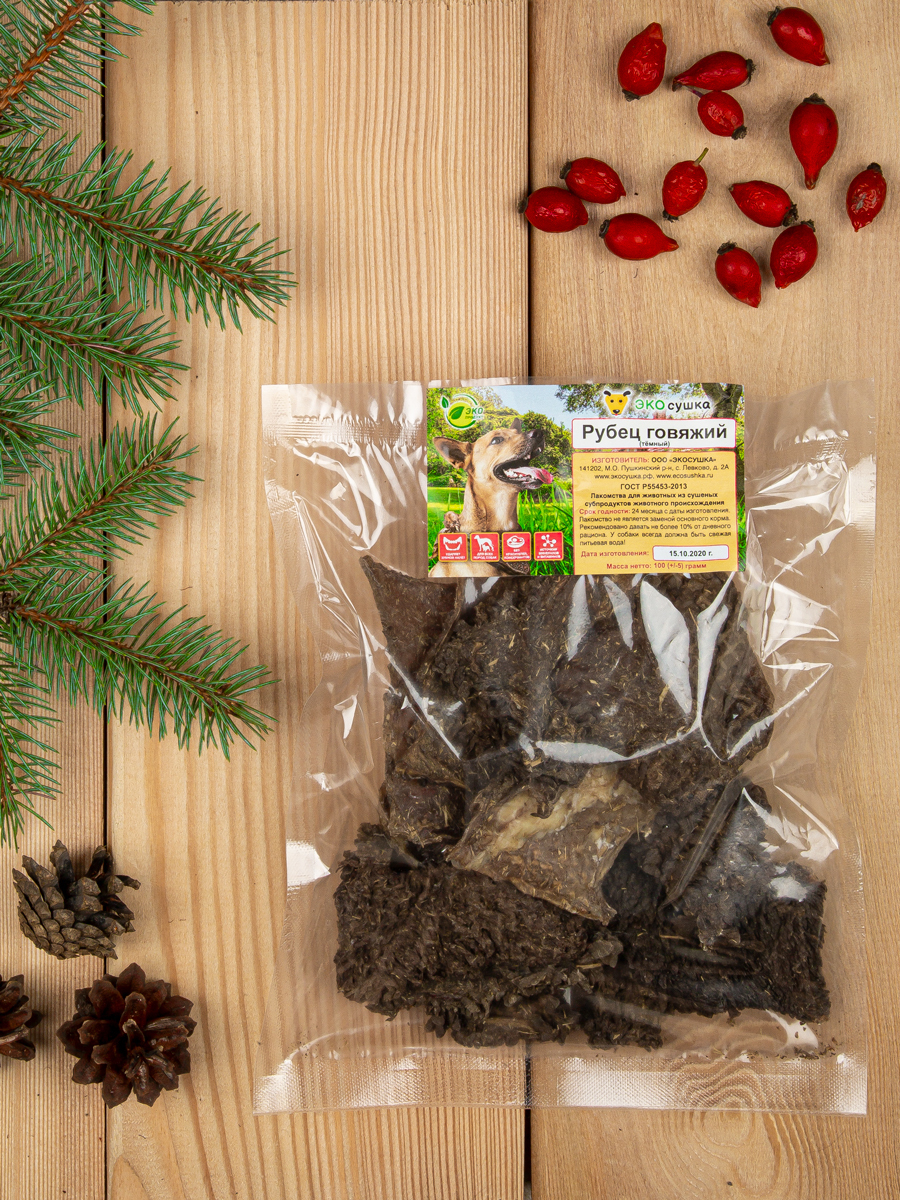 Лакомство для собак "ЭКОсушка" Рубец говяжий (тёмный) 100 гр