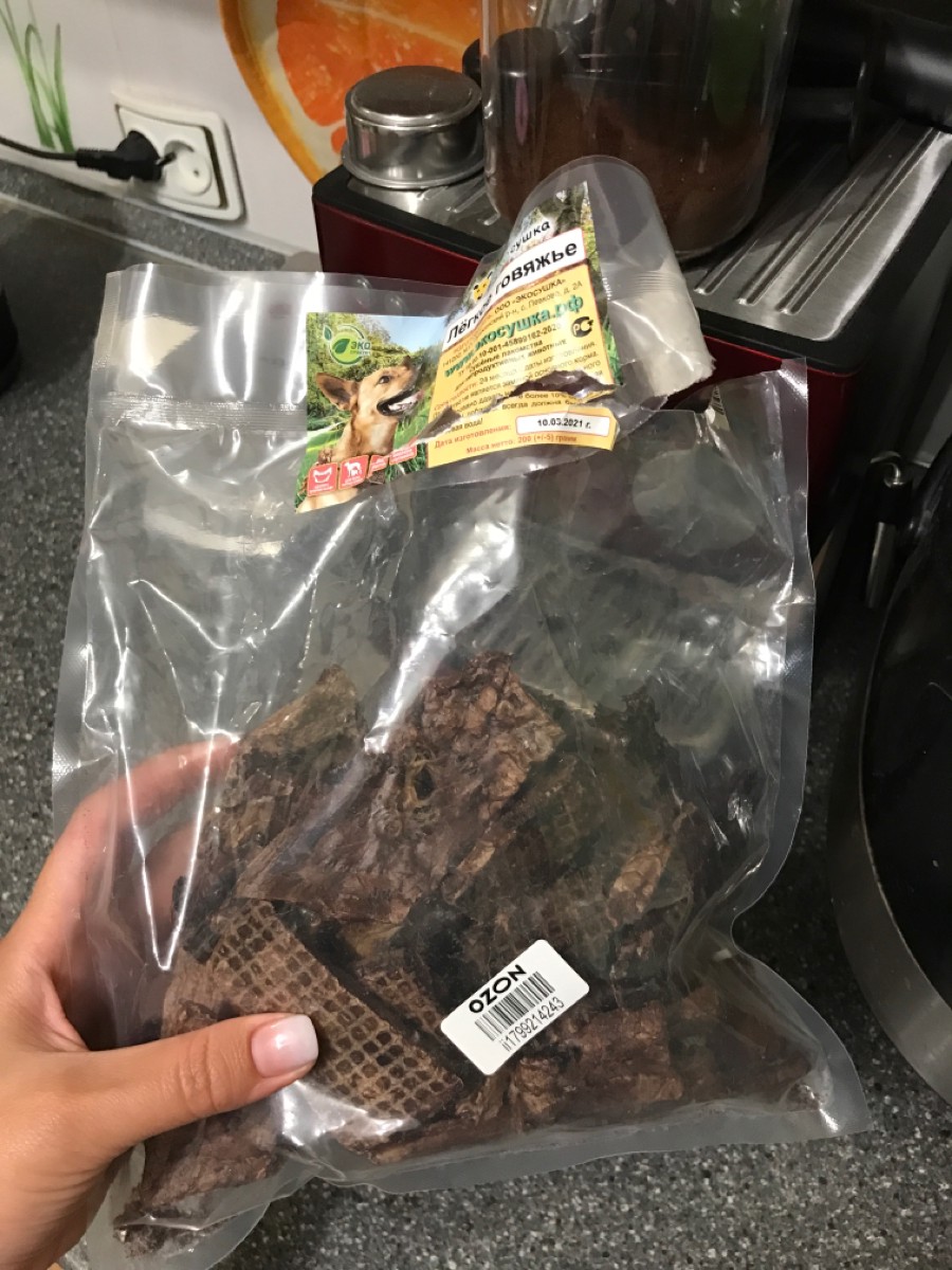 Лакомство для собак "ЭКОсушка" Рубец говяжий (тёмный) 300 гр