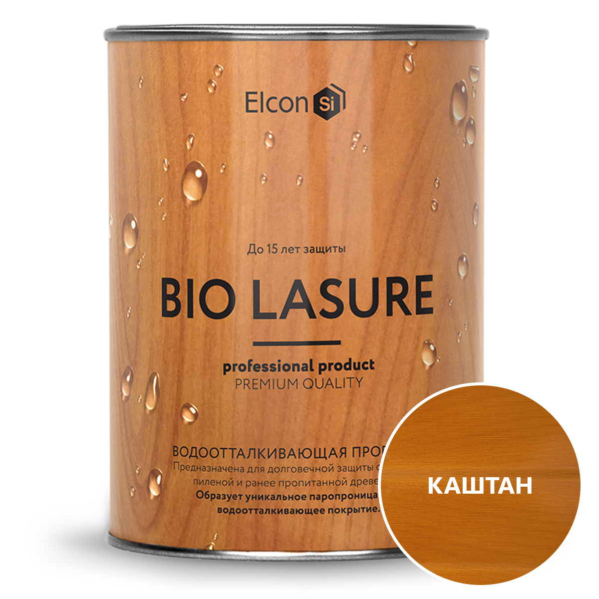 Elcon Bio Lasure / Водоотталкивающая пропитка для защиты дерева до 15 лет, каштан (0,9л)