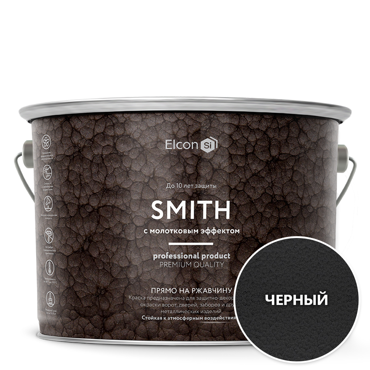 Краска Elcon Smith (с молотковым эффектом) Молотковая, Алкидная, Матовое покрытие, 2 кг, черный