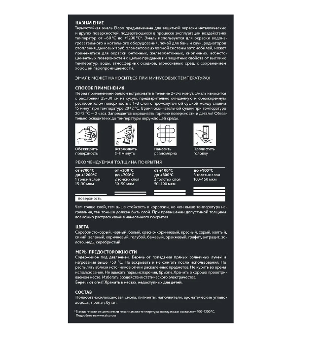 Краска Elcon Max Therm Термостойкая, до 1200°, Кремнийорганическая, Матовое покрытие, черный