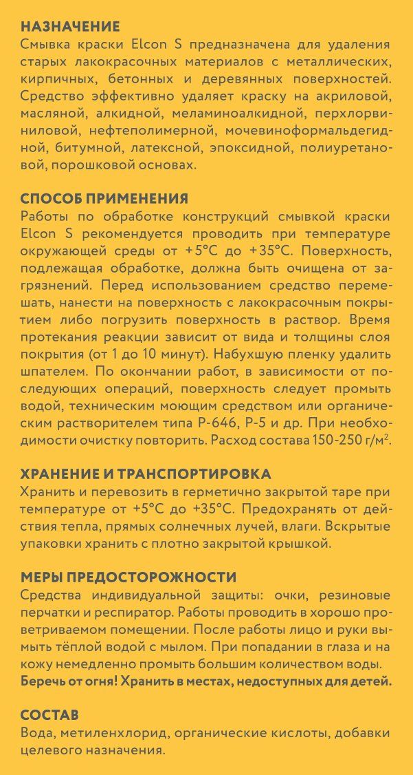 Cмывка краски Elcon S бесцветная, 0,65 кг