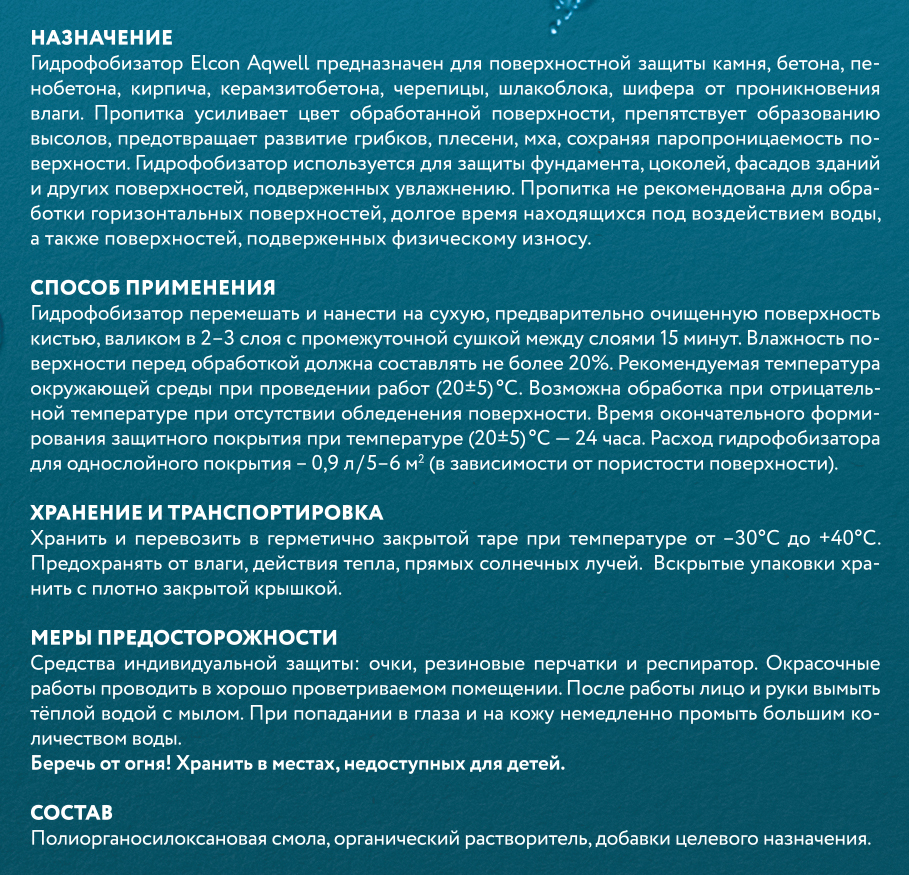 Водоотталкивающая пропитка (гидрофобизатор) с эффектом "мокрого камня" Elcon Aqwell 9 л
