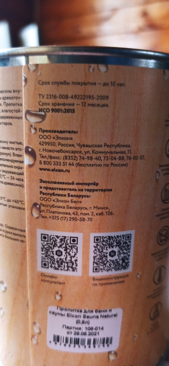 Elcon Bio Lasure / Водоотталкивающая пропитка для защиты дерева до 15 лет, бесцветная (0,9л)