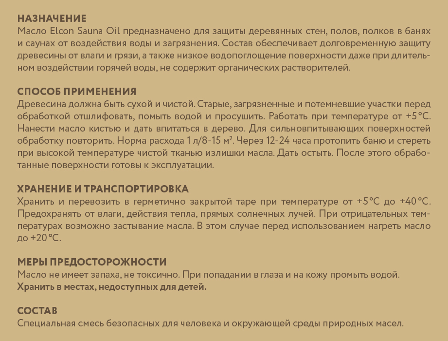 Масло для дерева Elcon Sauna Oil 0,5 л.