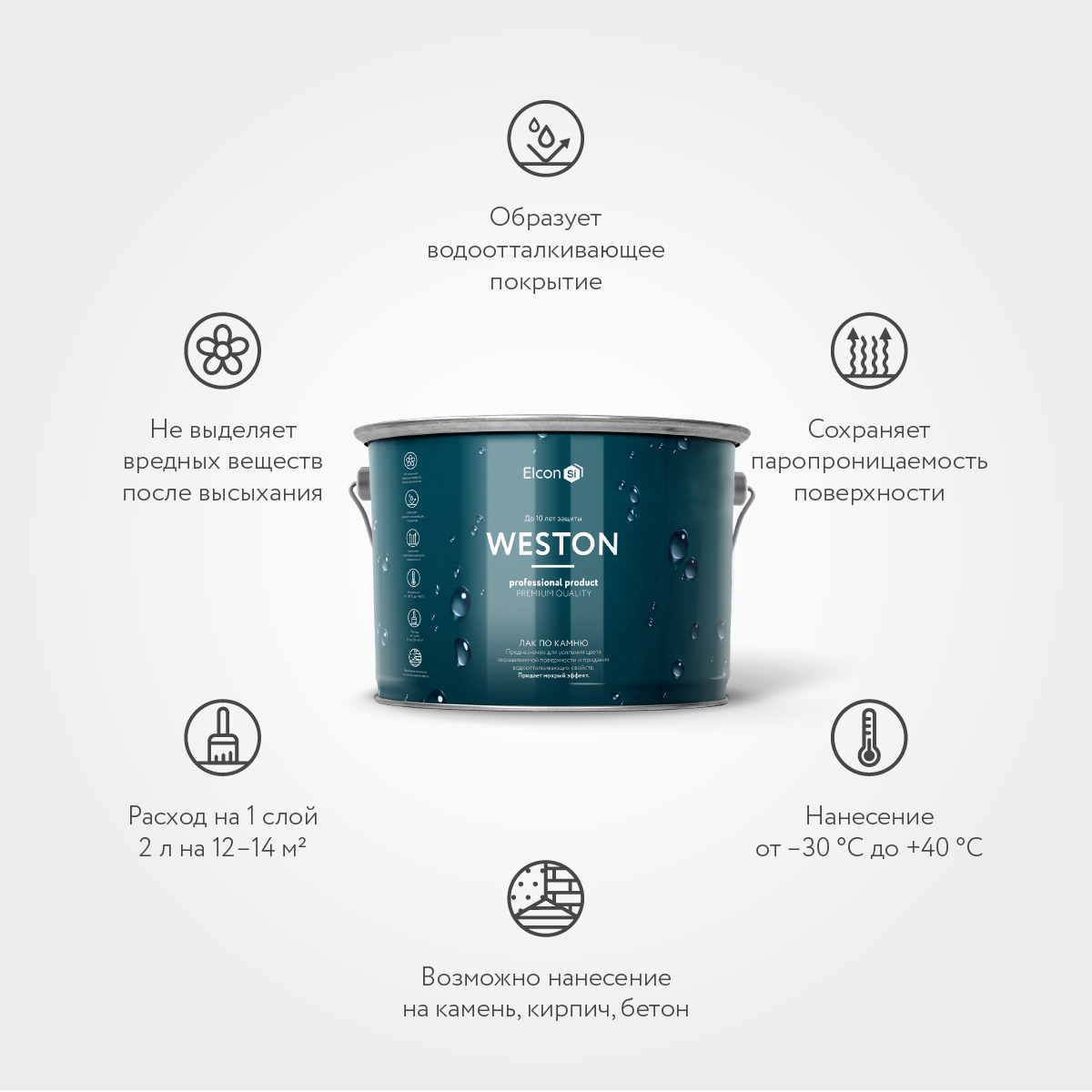 Гидрофобизатор, водоотталкивающая пропитка для камня, кирпича, бетона, Elcon Aqness, 2 л.
